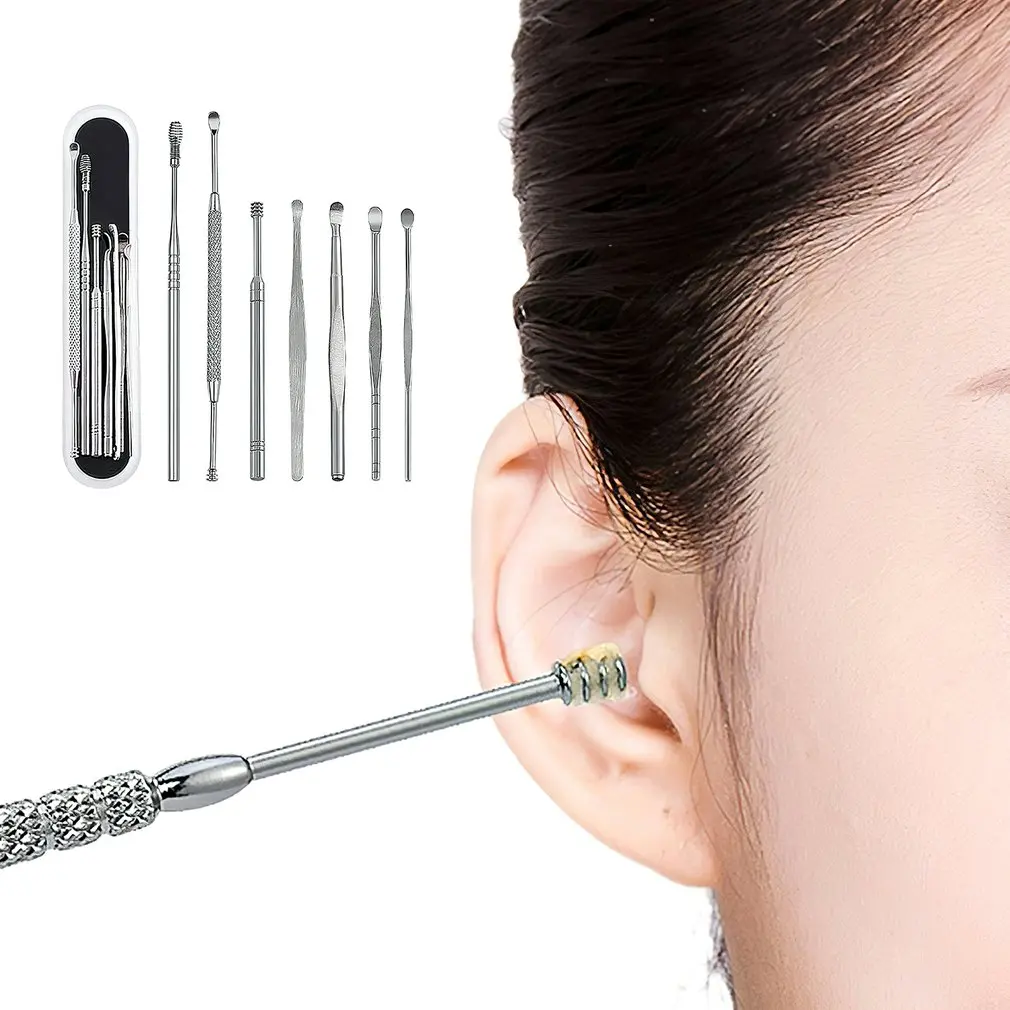 7 шт.компл. из титанового сплава спирально-поворотный ушной очиститель инструмент для чистки ушей Комплект для путешествий на открытом воздухе с гладкой поверхностью