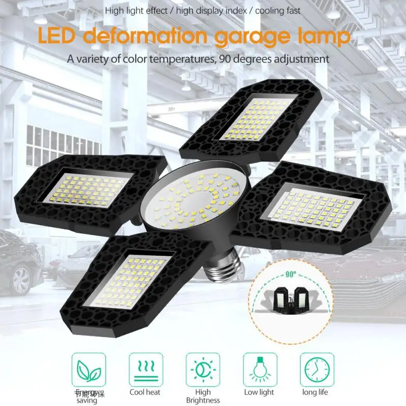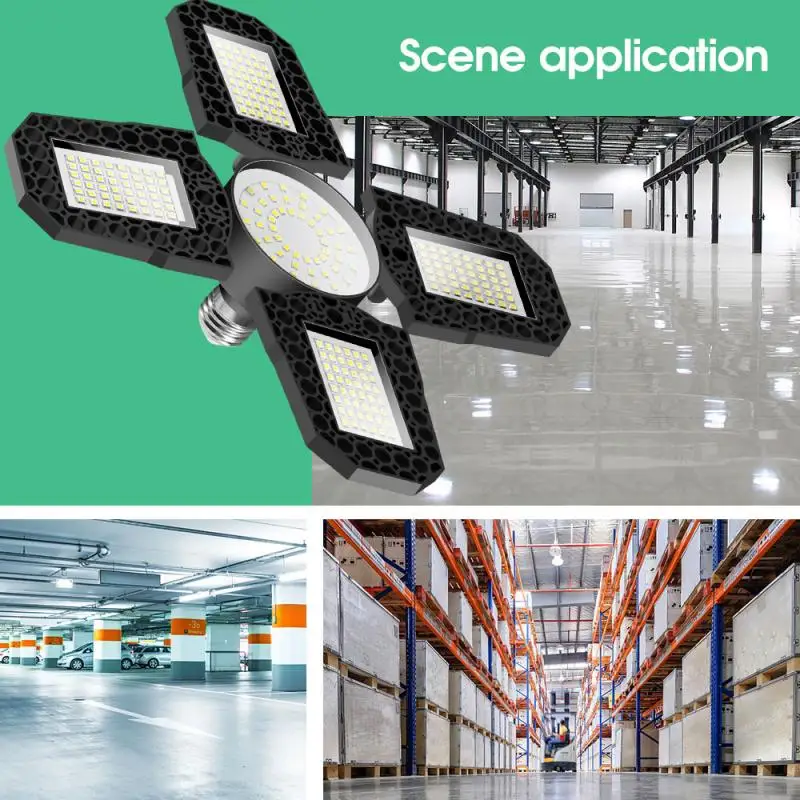 Светодиодный светильник для гаража с пятью листьями, складной потолочный светильник для гаража, комнатный и наружный освещение с высоким освещением