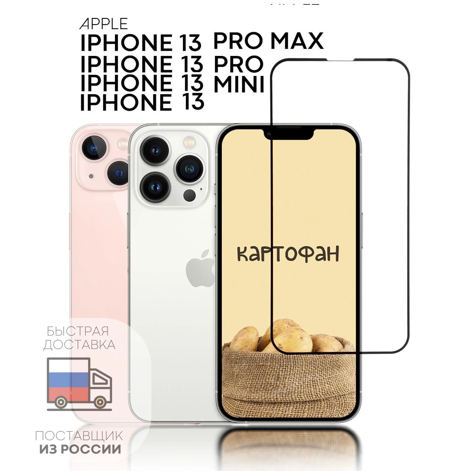 Защитное стекло КАРТОФАН для Apple Iphone 13 Iphone 13 Mini Iphone 13 Pro Iphone 13 ProMax с олеофобным покрытием