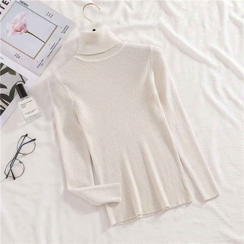 Оптовая продажа, Осенний женский свитер, тонкий мягкий вязаный пуловер с длинным рукавом и высоким воротником, Сексуальные облегающие тянущиеся черные свитера с высоким воротником