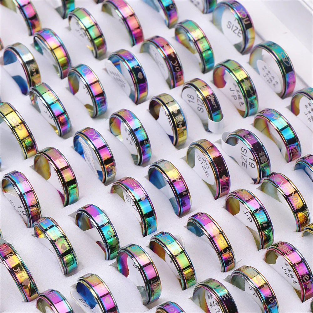 Кольца унисекс из нержавеющей стали, разноцветные, вращающиеся, 50 ...