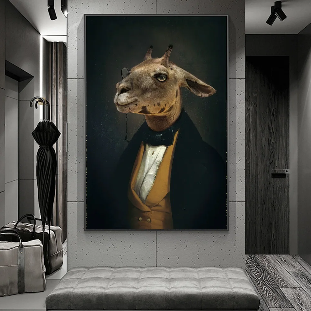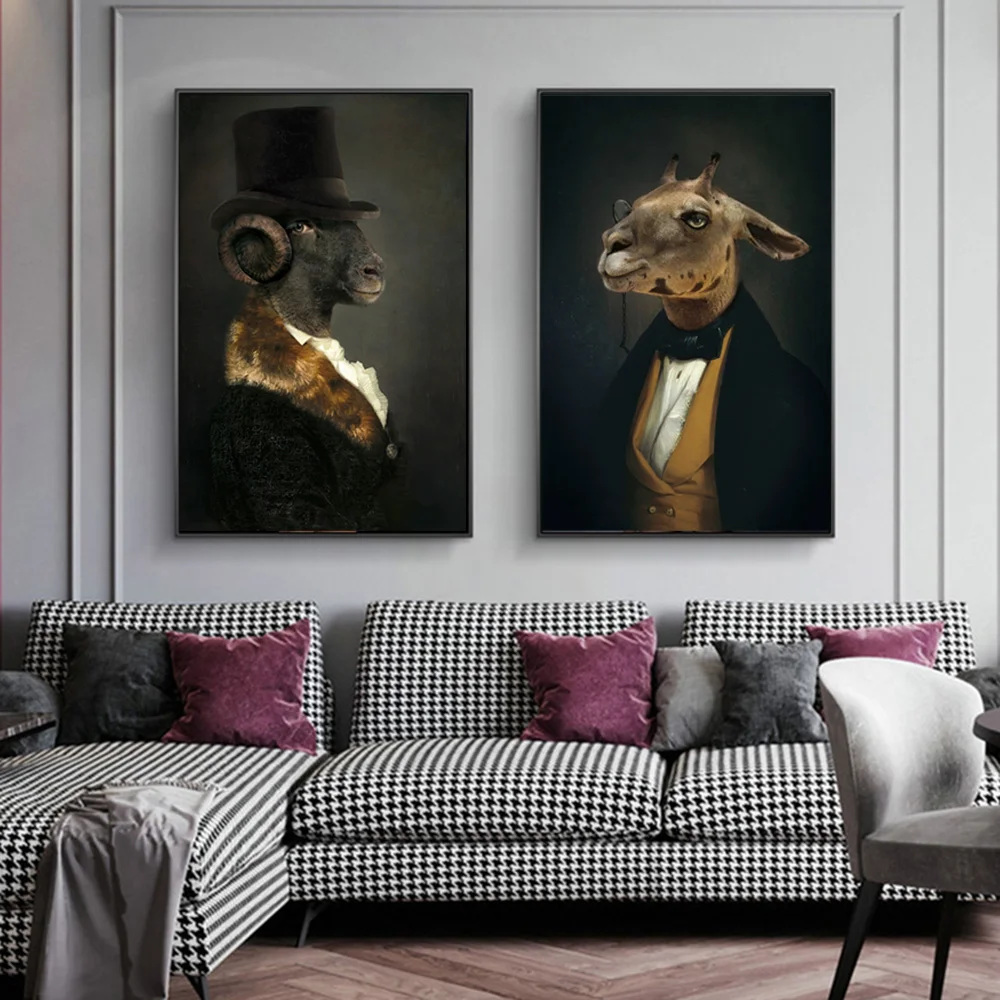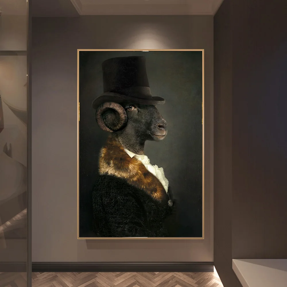 Ретро Коза джентльмен холст настенные картины художественные плакаты и принты животных в костюме домашний Декор картинки для гостиной