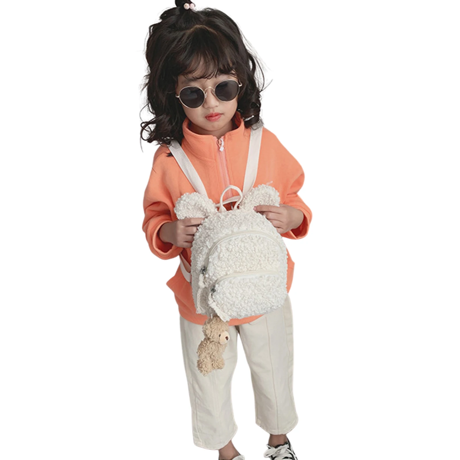 Детский рюкзак для малышей, милый школьный рюкзак с заячьими ушками, зимний теплый флисовый рюкзак для мальчиков и девочек