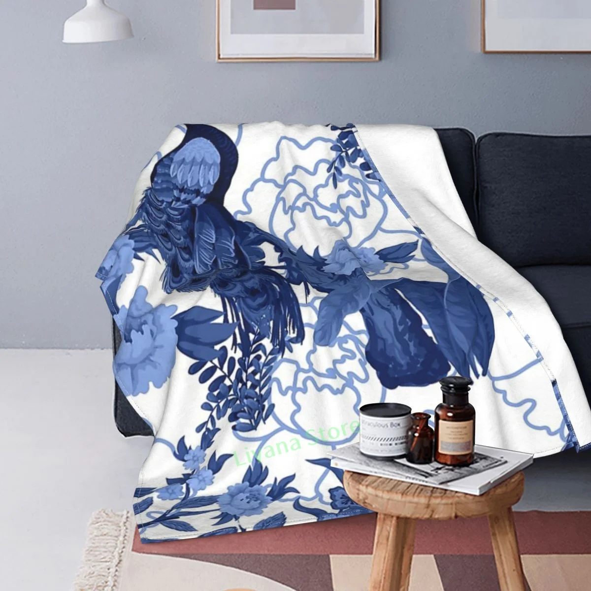 Delft синее китайское фэншуй Восточное одеяло для сада с принтом диван для спальни декоративное одеяло для детей и взрослых на Рождество