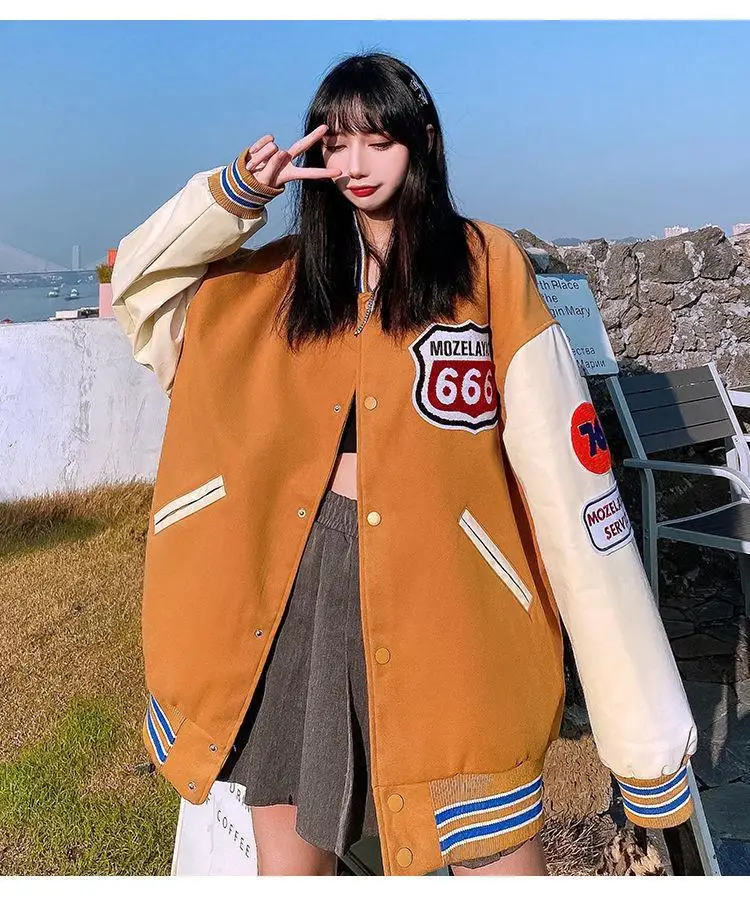 Куртка-бомбер МужскаяЖенская в стиле ретро, модная уличная одежда для американской бейсбольной униформы, осень 2021