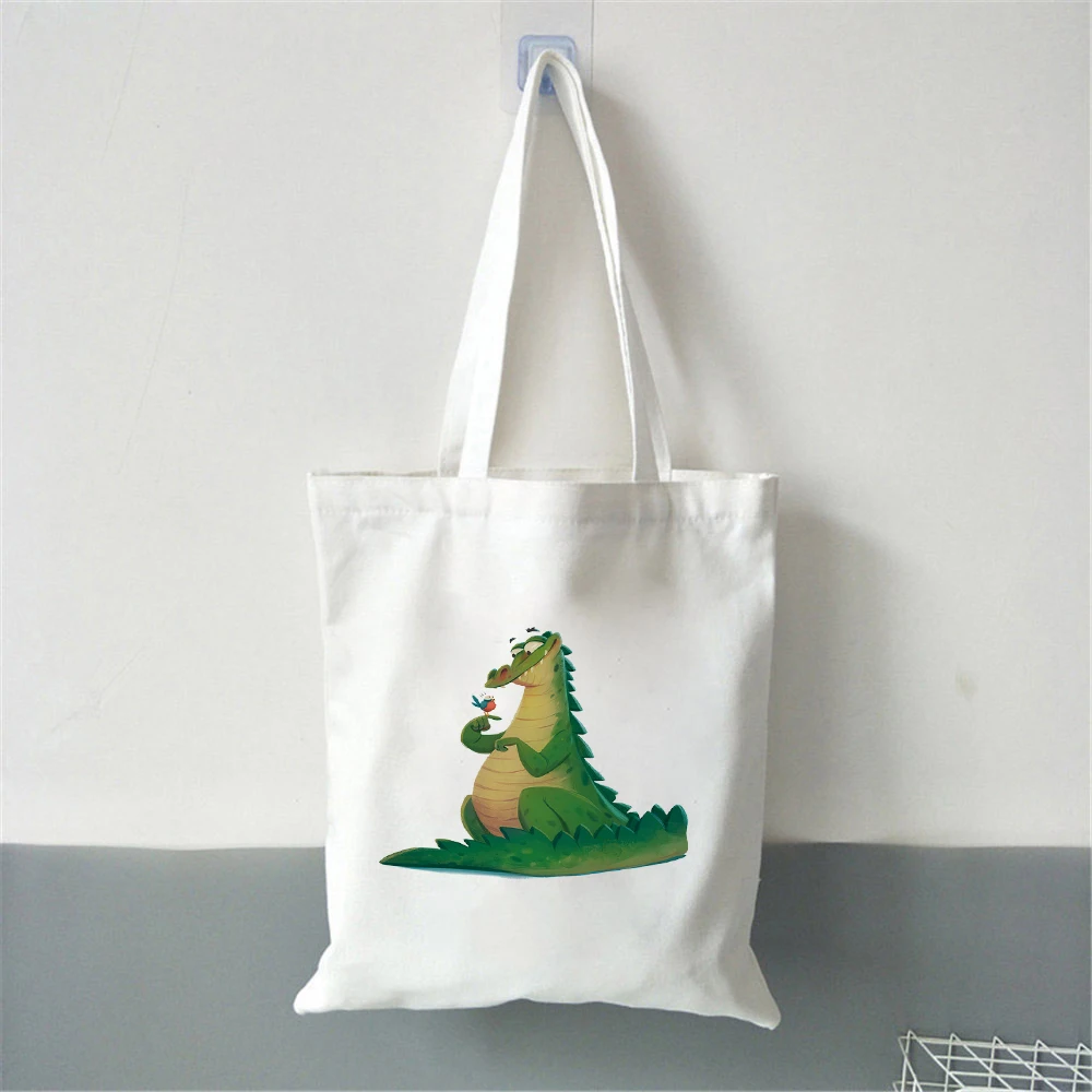 Симпатичная мультяшная сумка для покупок с динозавром, холщовые сум...
