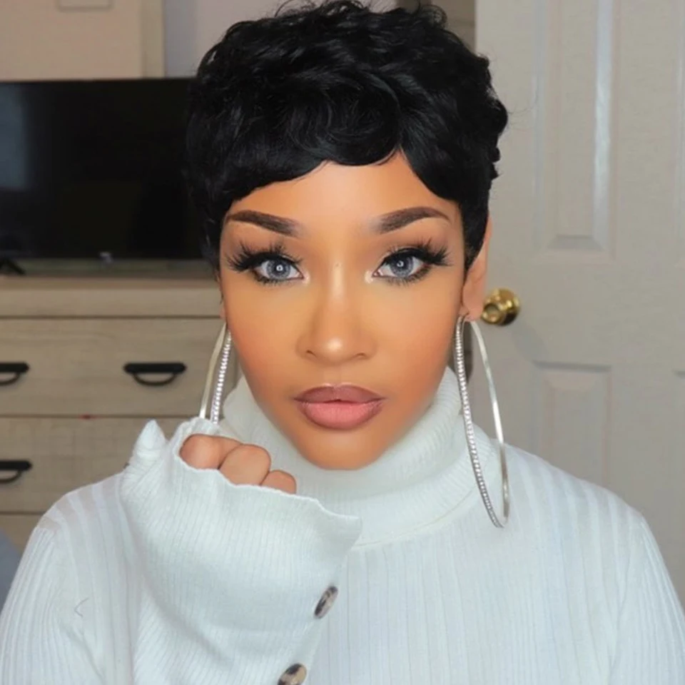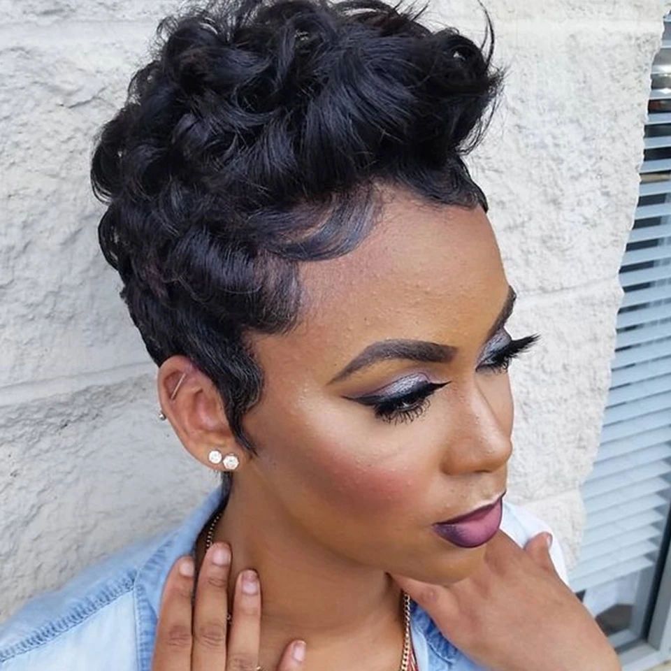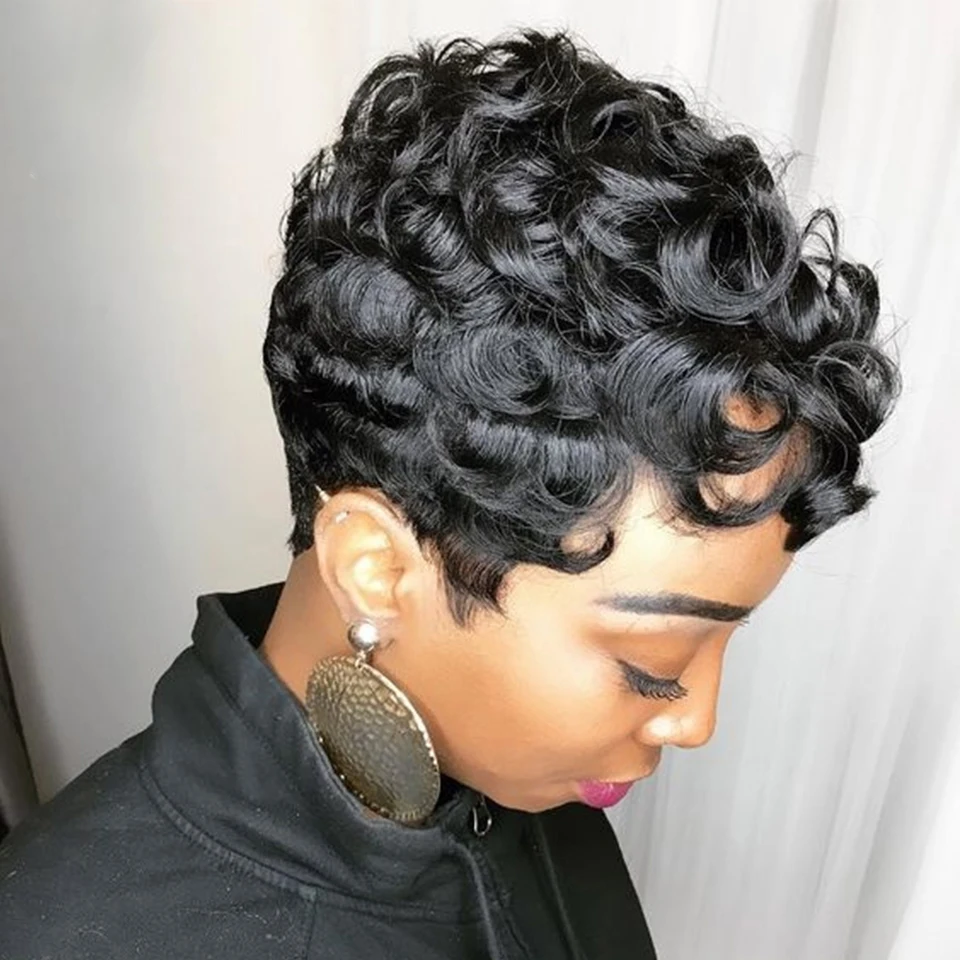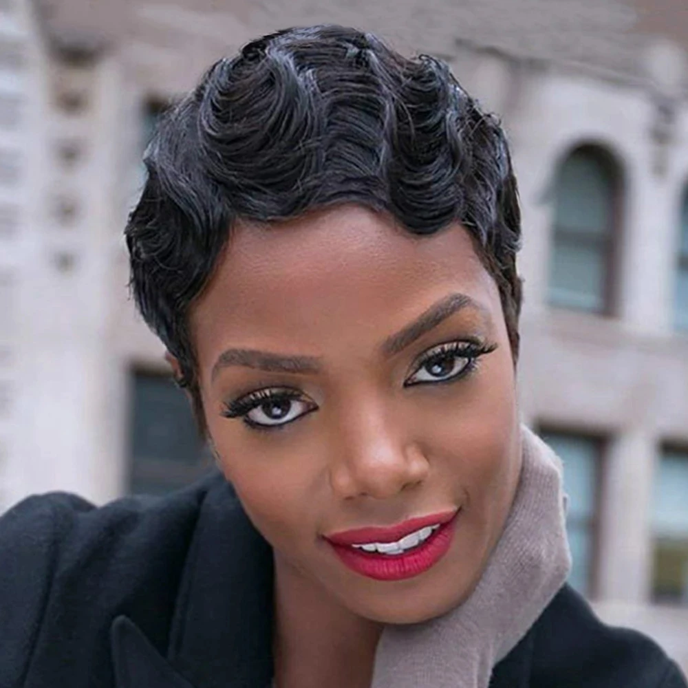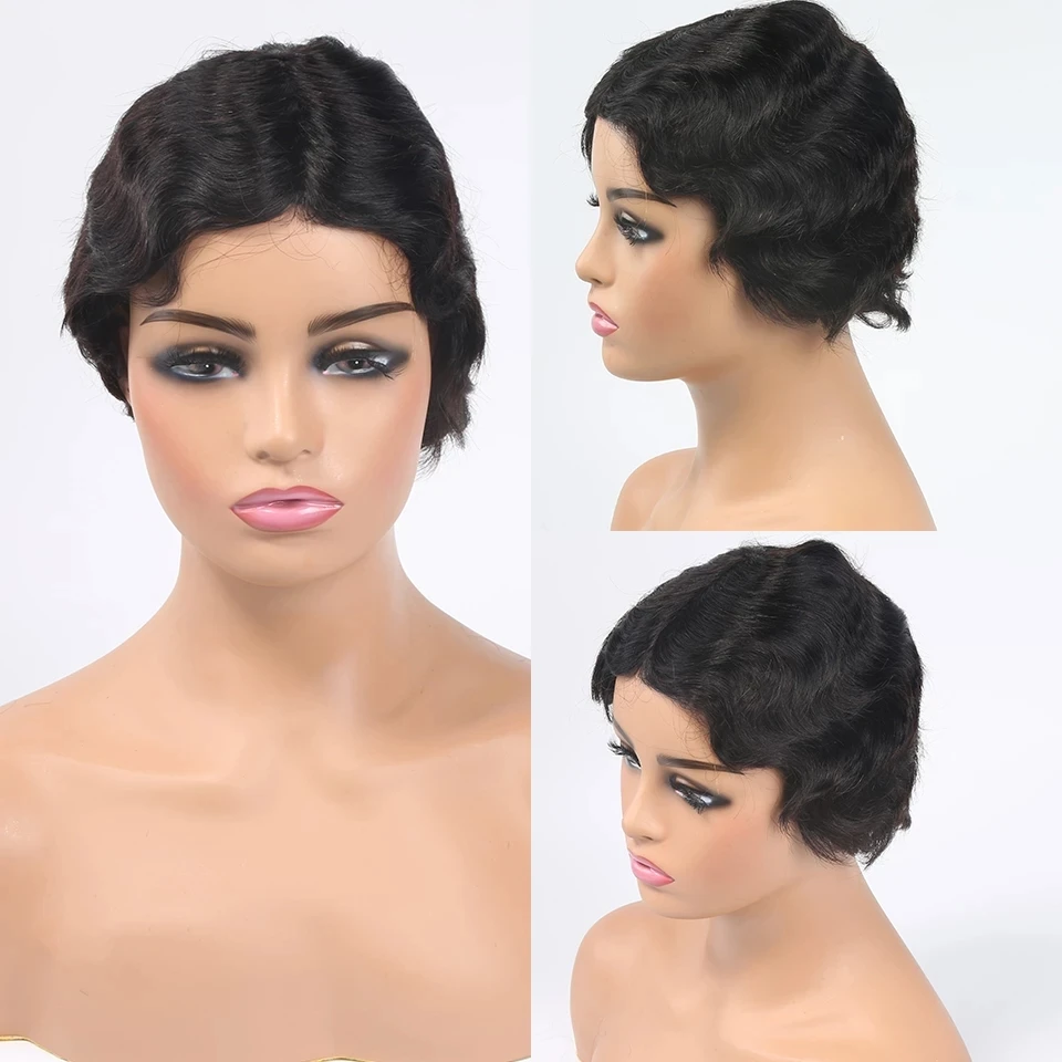 Парик в стиле ретро, парик из человеческих волос, короткие кудрявые волосы, парики с волнистыми пальцами для женщин, полноценный парик, дешевые парики из человеческих волос Remy