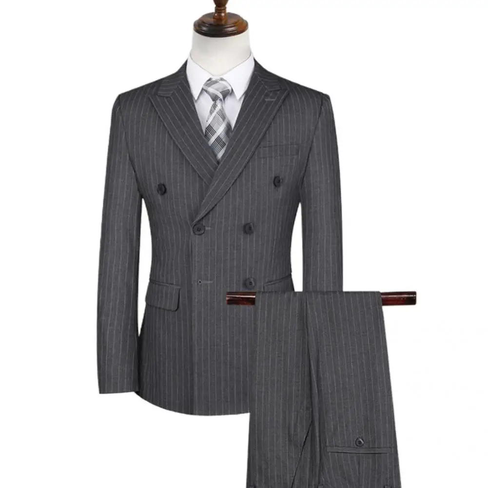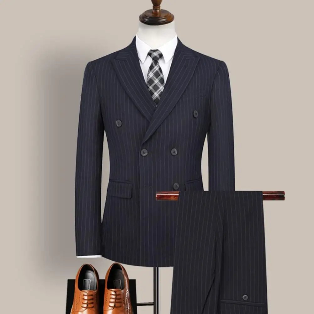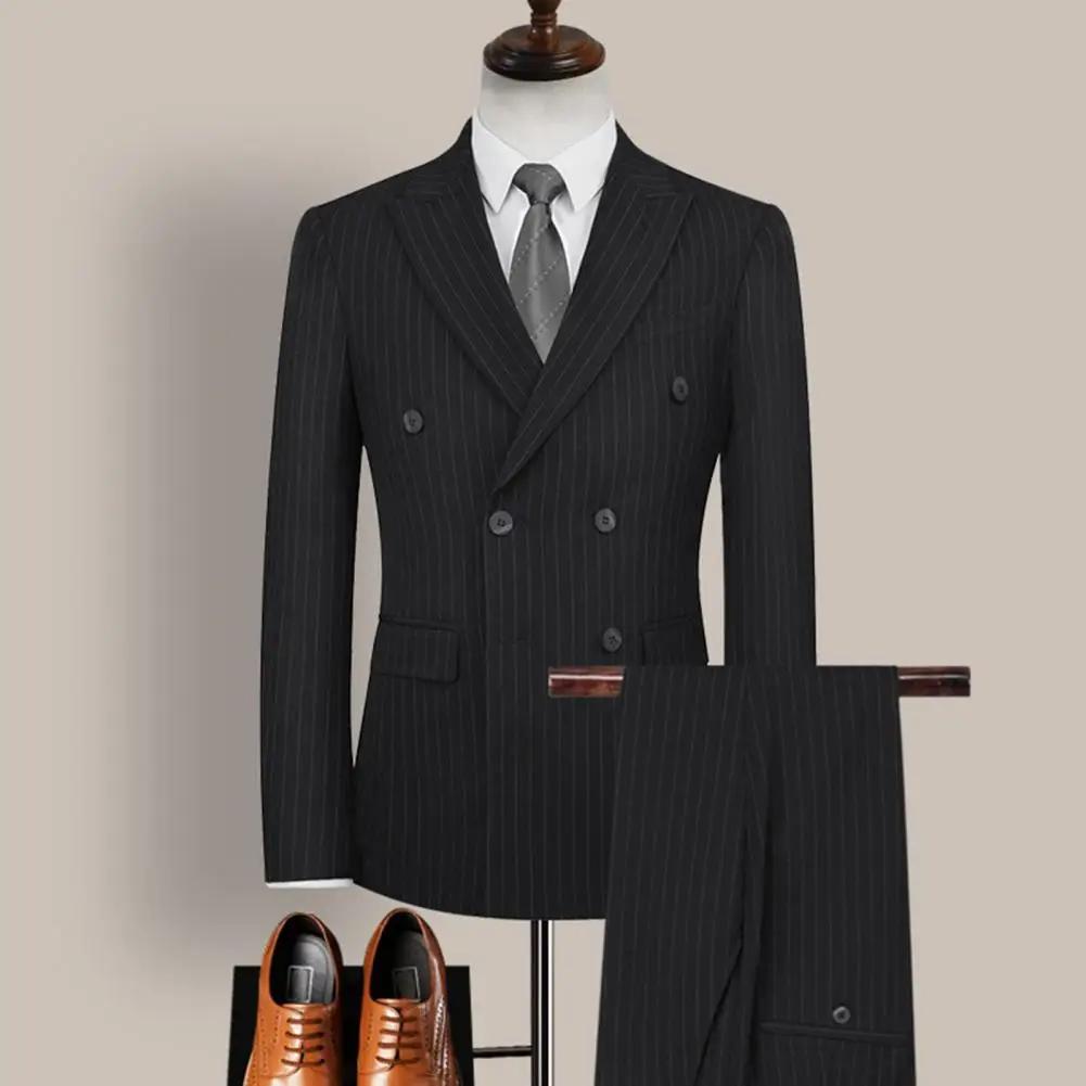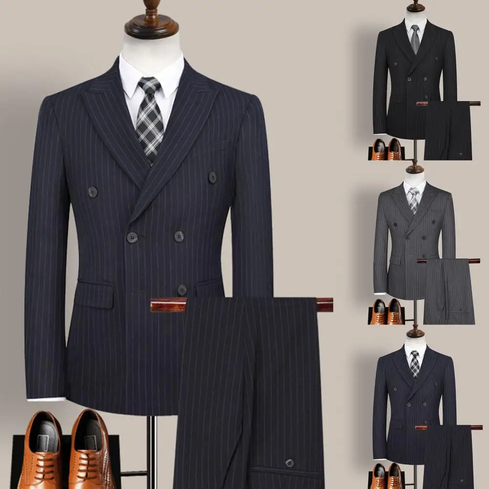 2021 New Fashion Men Double Breasted Stripe Lapel Formal Blazer Pants Suit Set Two Pieces for Wedding Men Suit Set
