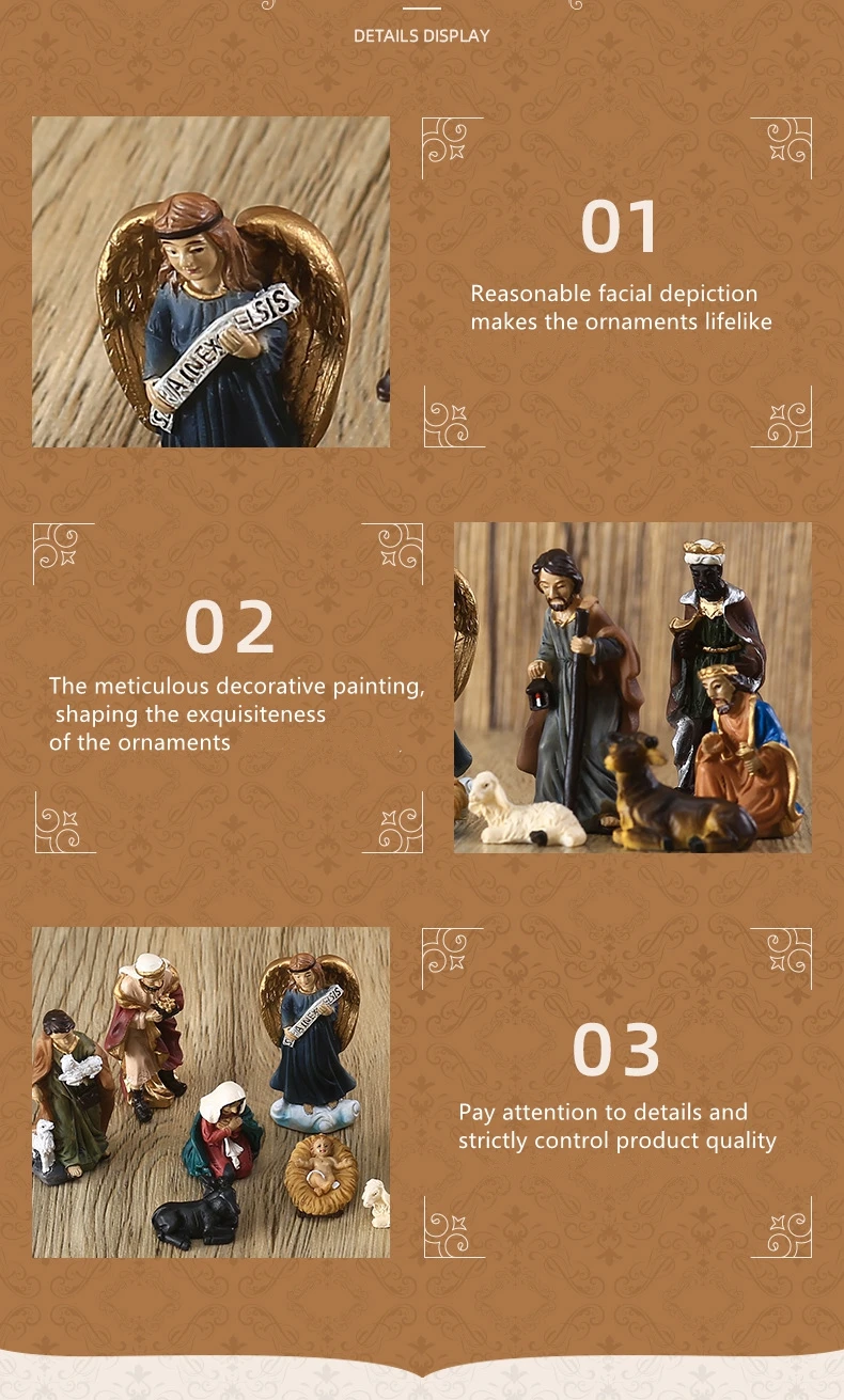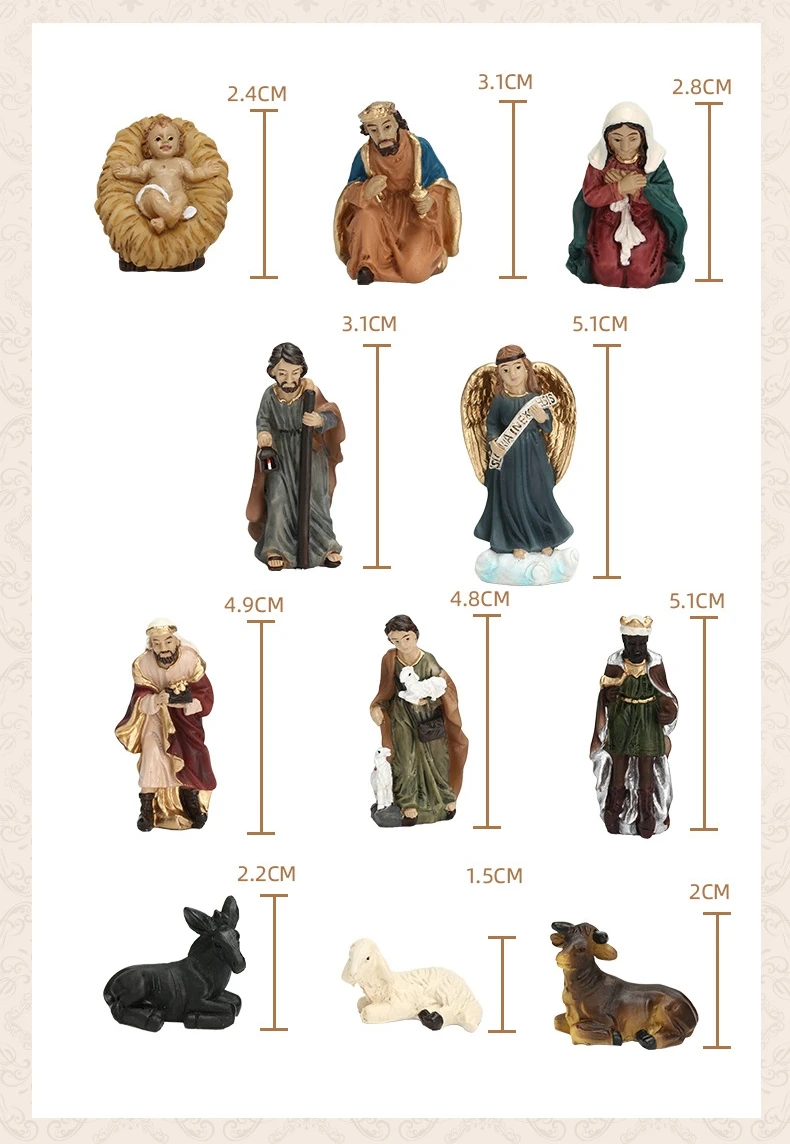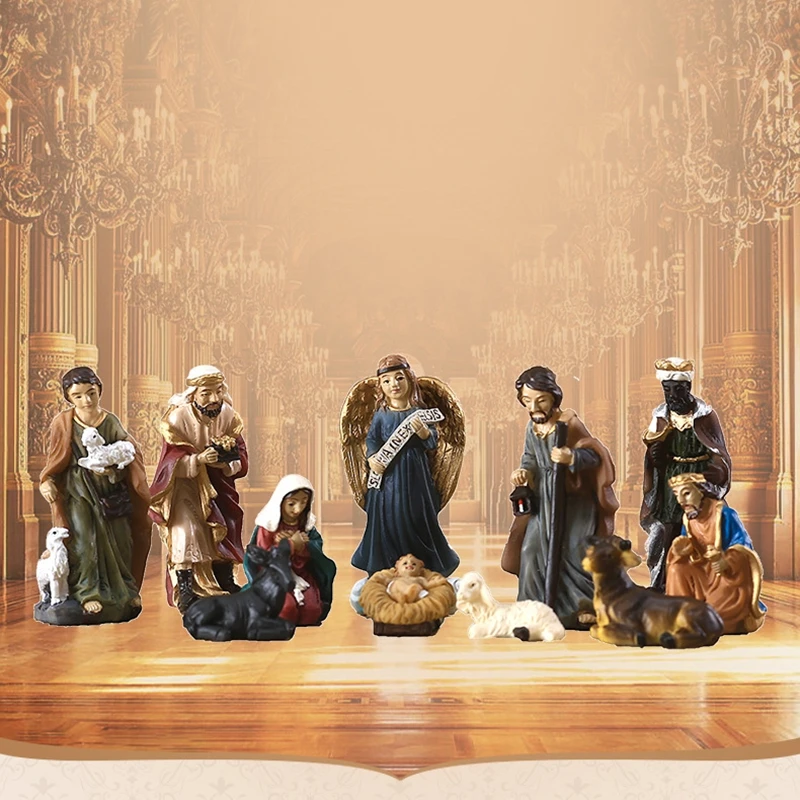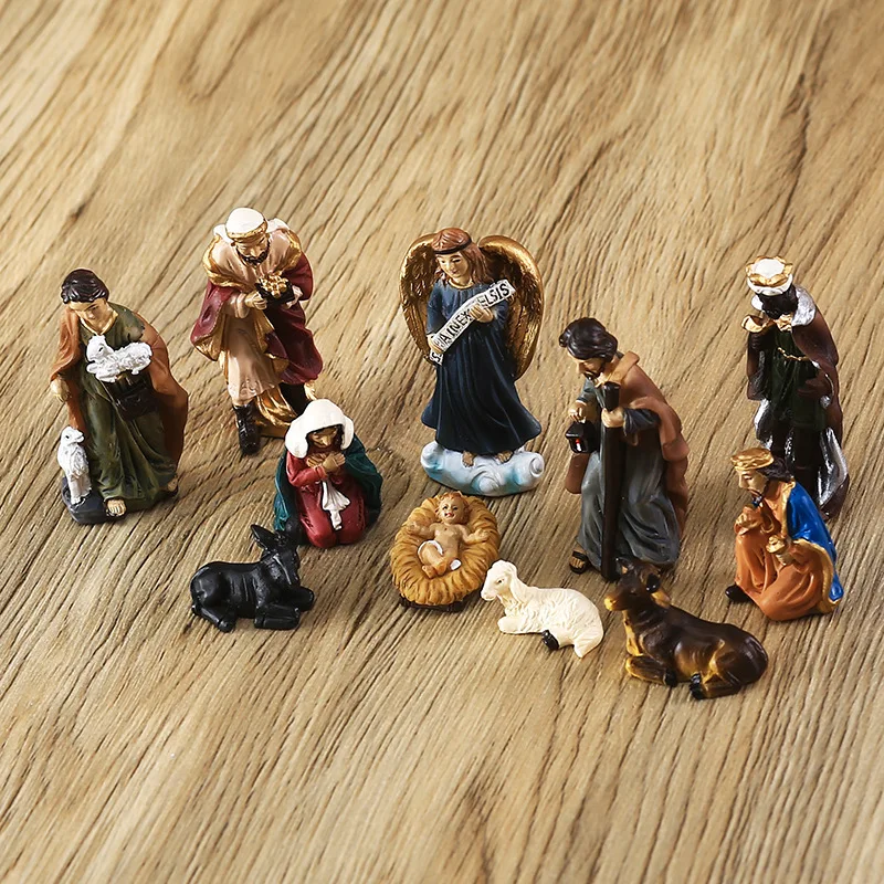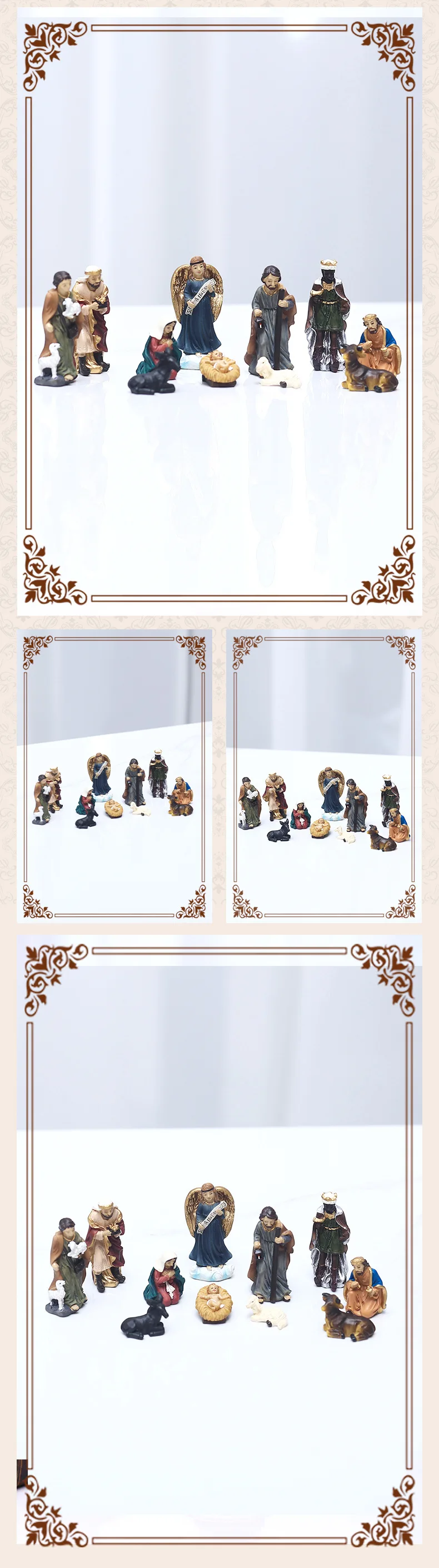 11 шт./компл. Рождественская комбинация из смолы, небольшие украшения, Рождественская религиозная скульптура