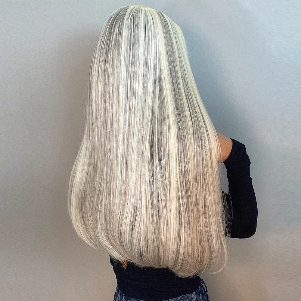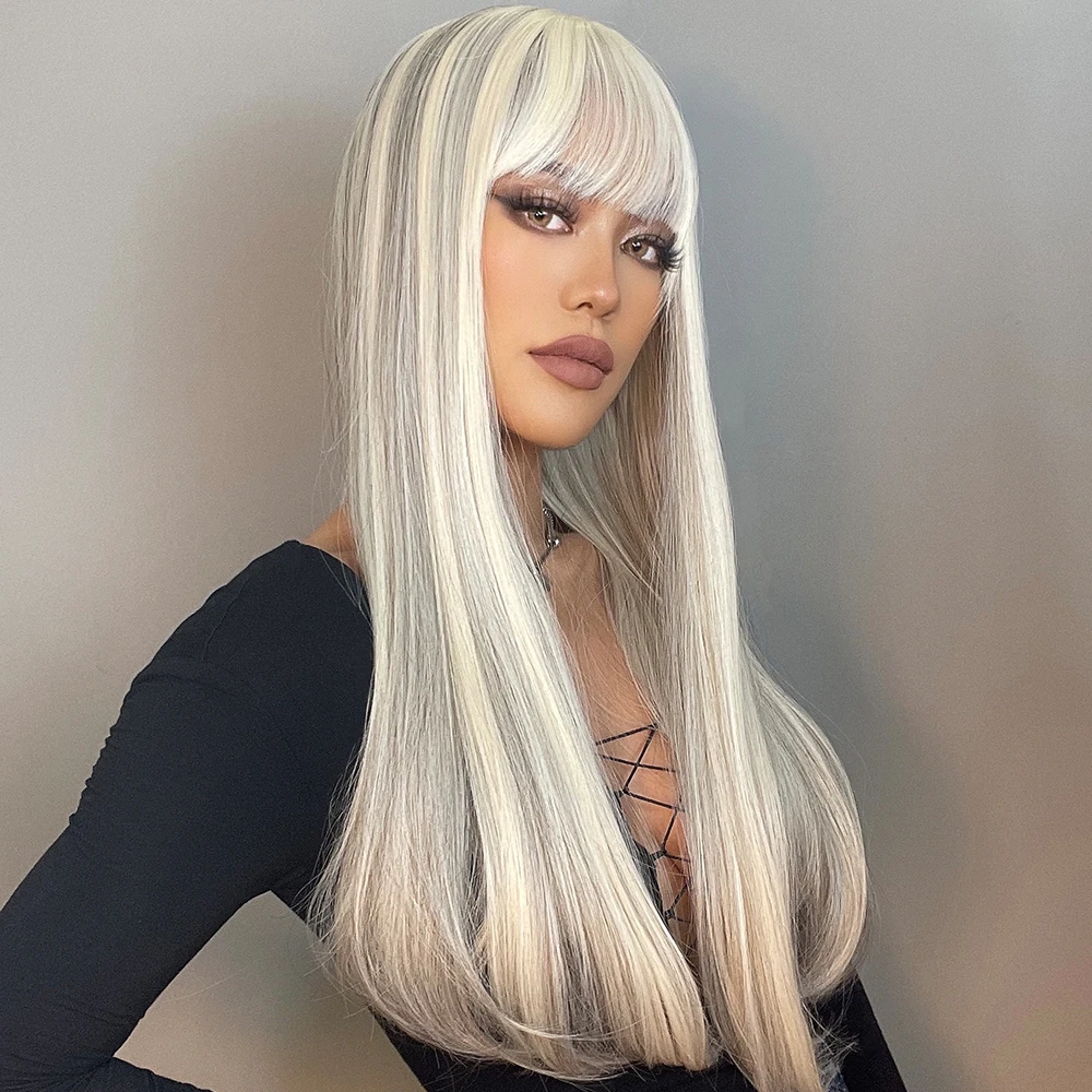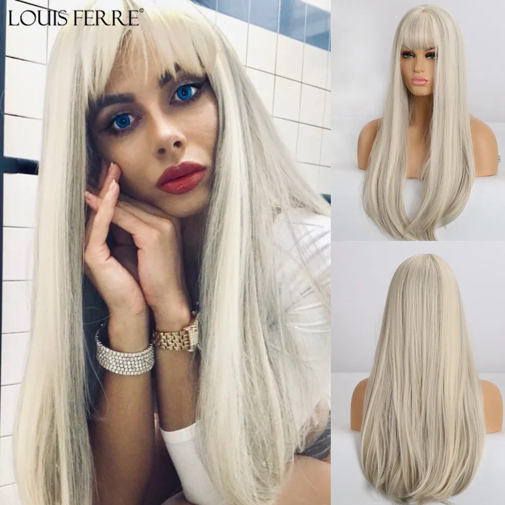 Женские Длинные прямые синтетические парики LOUIS FERRE, смешанный белый серый парик с челкой, косплей-парики из натуральных волос для вечеринки из термостойкого волокна