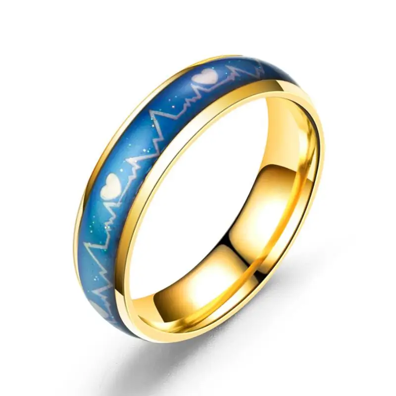 Sinogaa Температурное кольцо на палец ЭКГ парное умное кольцо из нержавеющей стали парное Кольцо волшебное термохромное кольцо из титановой стали