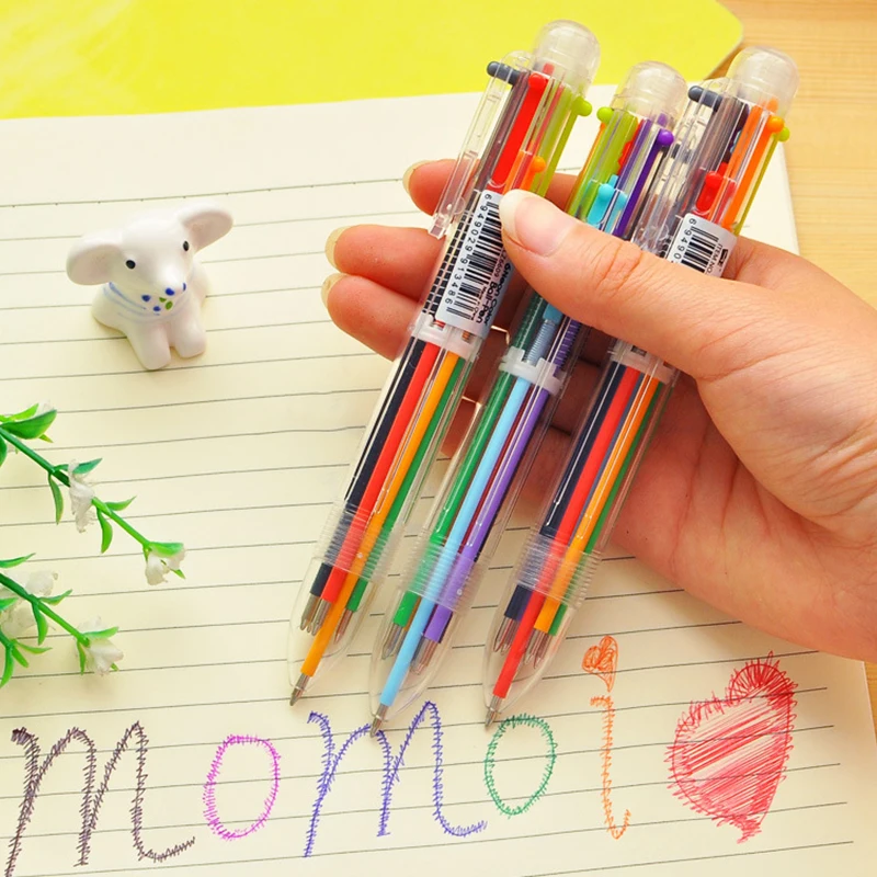 Многоцветные ручки 6 в 1, выдвижная шариковая ручка, удобные шариковые ручки, канцелярские принадлежности, школьные принадлежности для офиса, студентов, ручка