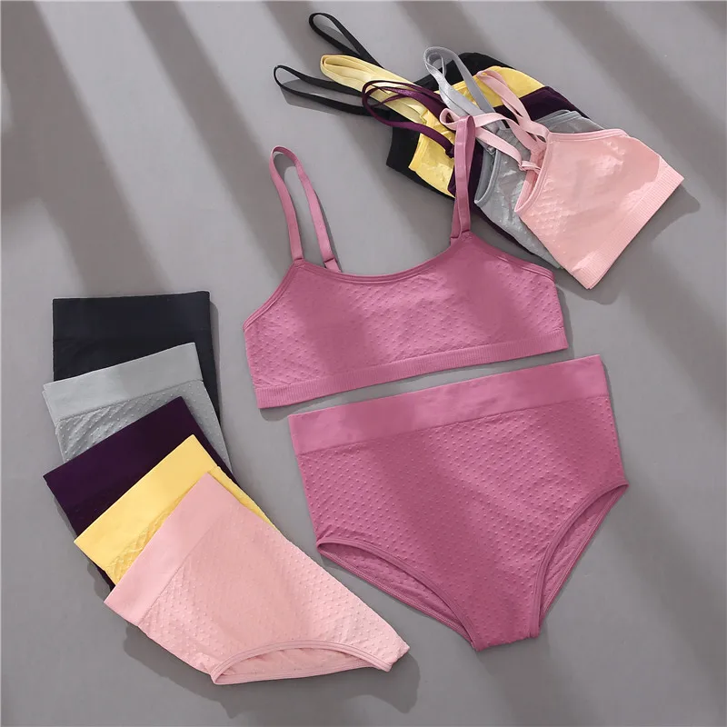 FINETOO Жаккардовый комплект с бюстгальтером, женский бесшовный костюм нижнего белья, женские топы, трусы с высокой талией, S-2XL, комплект бюстгальтеров большого размера, беспроводные топы 2021