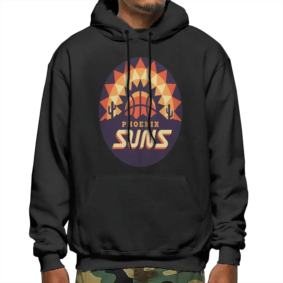 Длинные рукава, веревка с капюшоном и карман-кенгуру спереди. Резьбовая кромка манжеты.