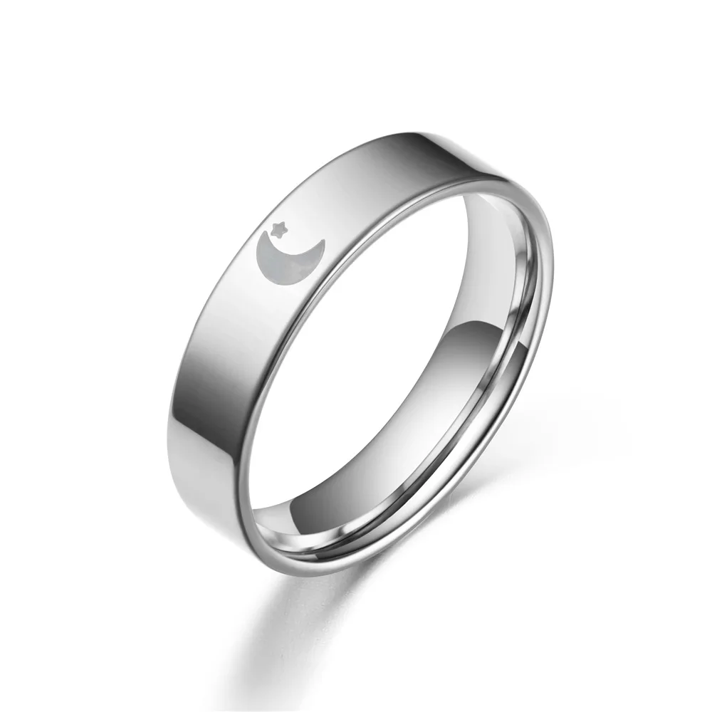 Кольцо с Луной и звездой, из нержавеющей стали, для пар, широкое со...