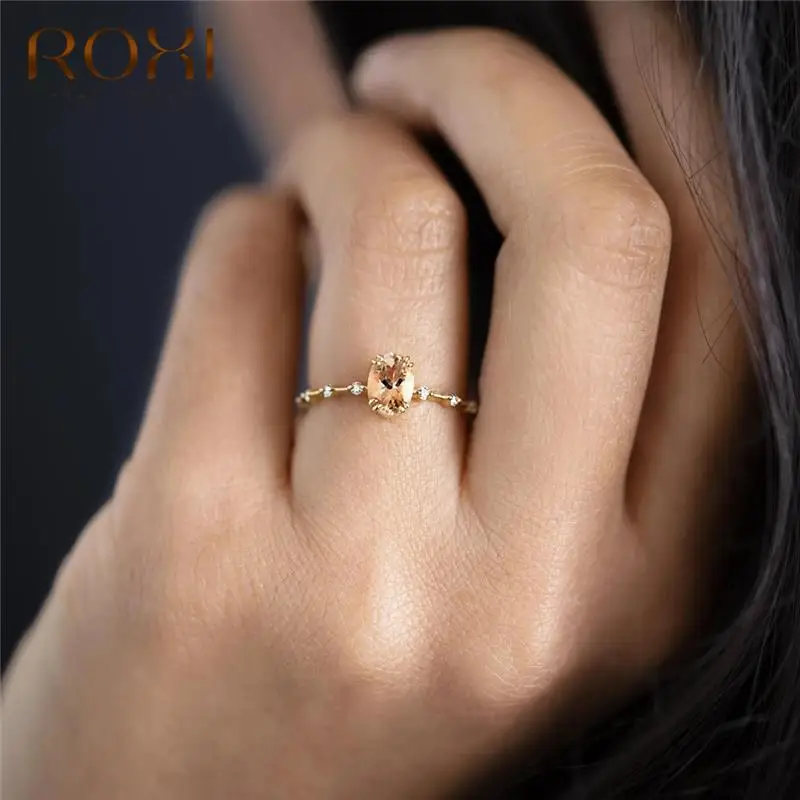 ROXI элегантные золотые кольца в форме яйца с кристаллами цвета шампанского для женских колец из стерлингового серебра 925 пробы, обручальные кольца в стиле бохо