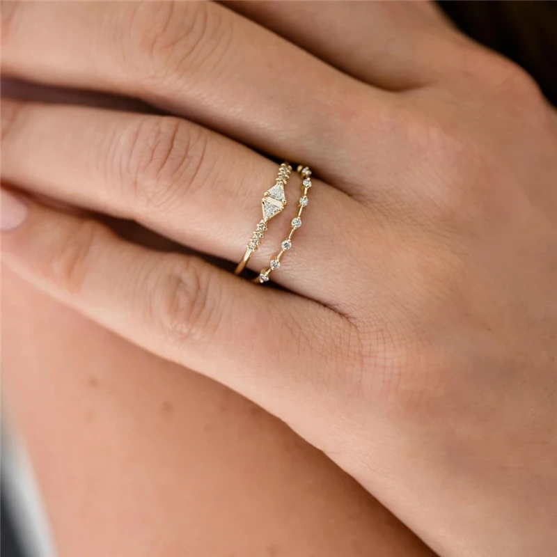 【Тип товара 】: геометрические симметричные треугольные Кристальные золотые кольца
