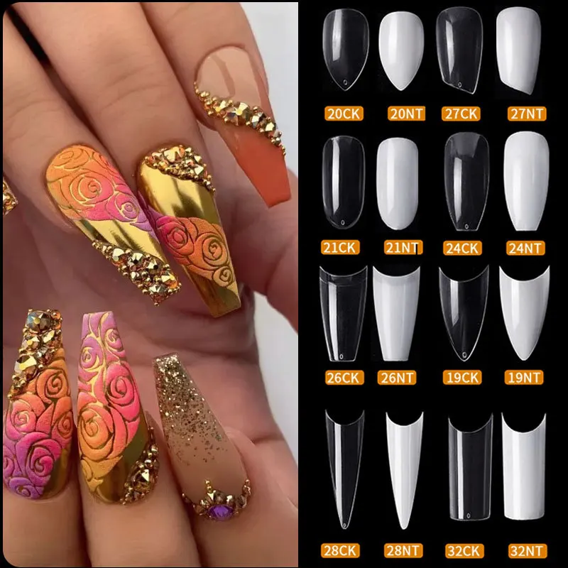 Накладные ногти прозрачного цвета, 500 шт., для наращивания ногтей,...