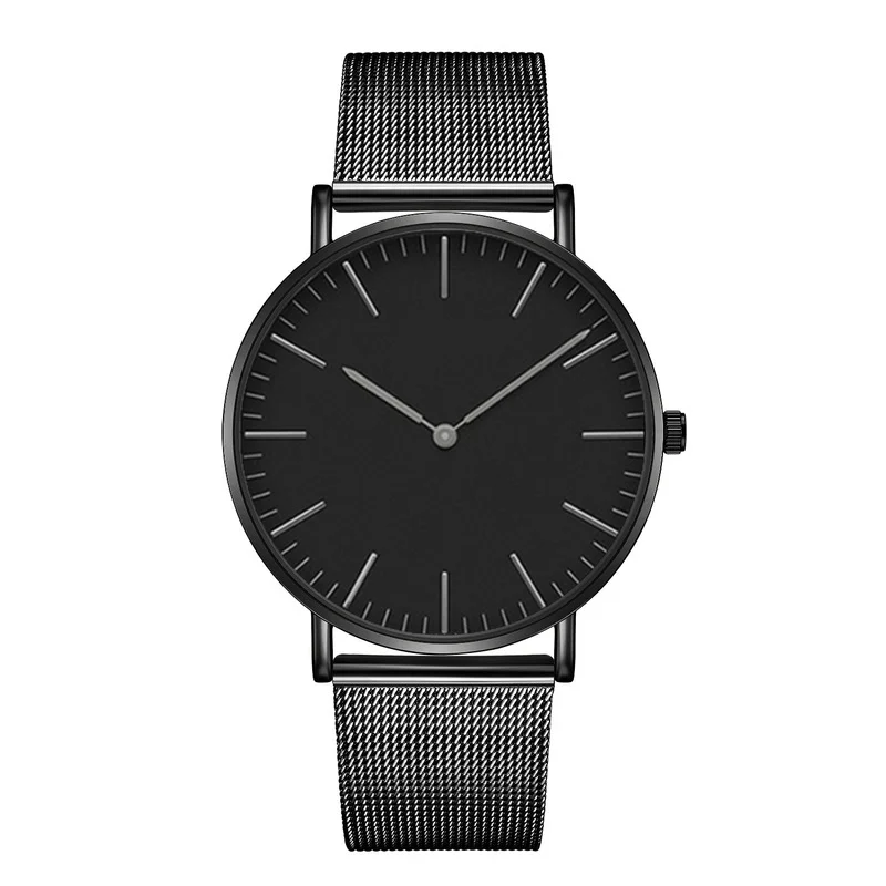 Современные модные черные кварцевые часы для мужчин и женщин, сетчатый ремешок из нержавеющей стали, высокое качество, повседневные наручные часы, подарок для женщин reloj hombre