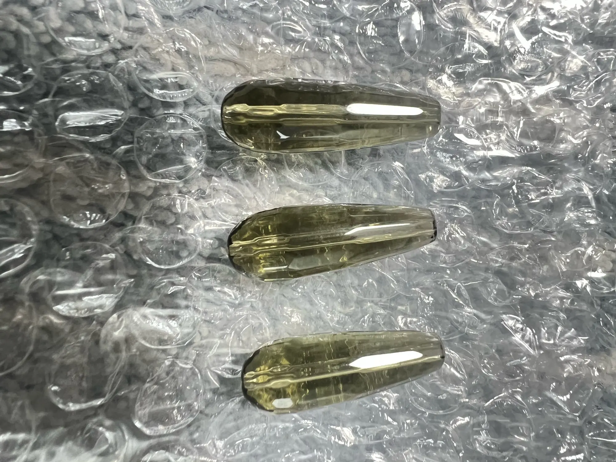 Название камня:Граненый кристалл дымчатого кварца капли воды