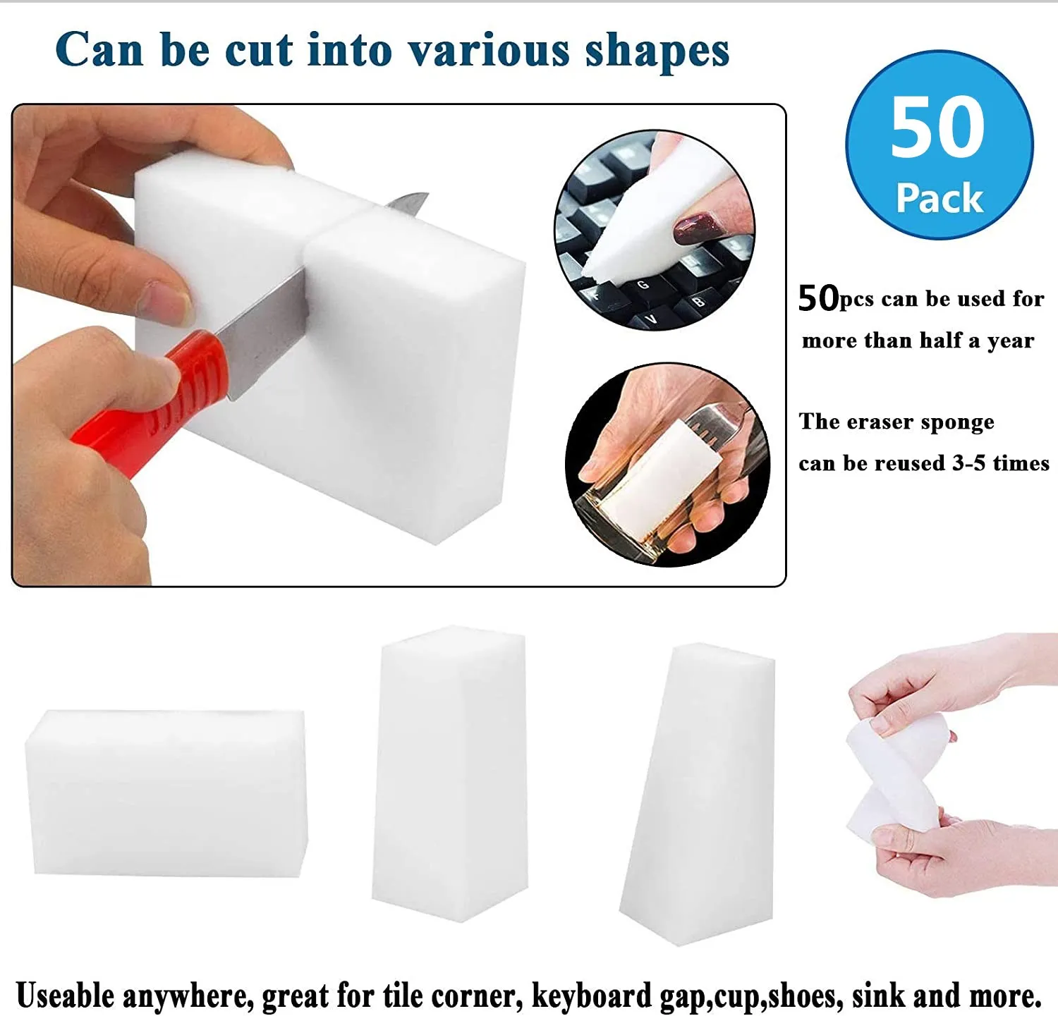 Особенности:1. Изготовлен из экологически чистых материалов, он может очистить большую часть пыли без пятен моющего средства.2. Вы можете разрезать его на любой размер, который подходит.3. Подходит для чистки раковин, ванных комнат, холодильников, вытяжек и т. д.Как использовать:1. Замочите губку в воде и выдавите немного воды;2. Аккуратно протрите область пятен;3. Теплая вода может быть более полезна для очистки;4. После использования добавьте в краску грязную губку холодной водой и дайте ей высохнуть для следующего использования.Особенности:Размер: 100x60x20ммЦвет: белыйМатериал: меламин