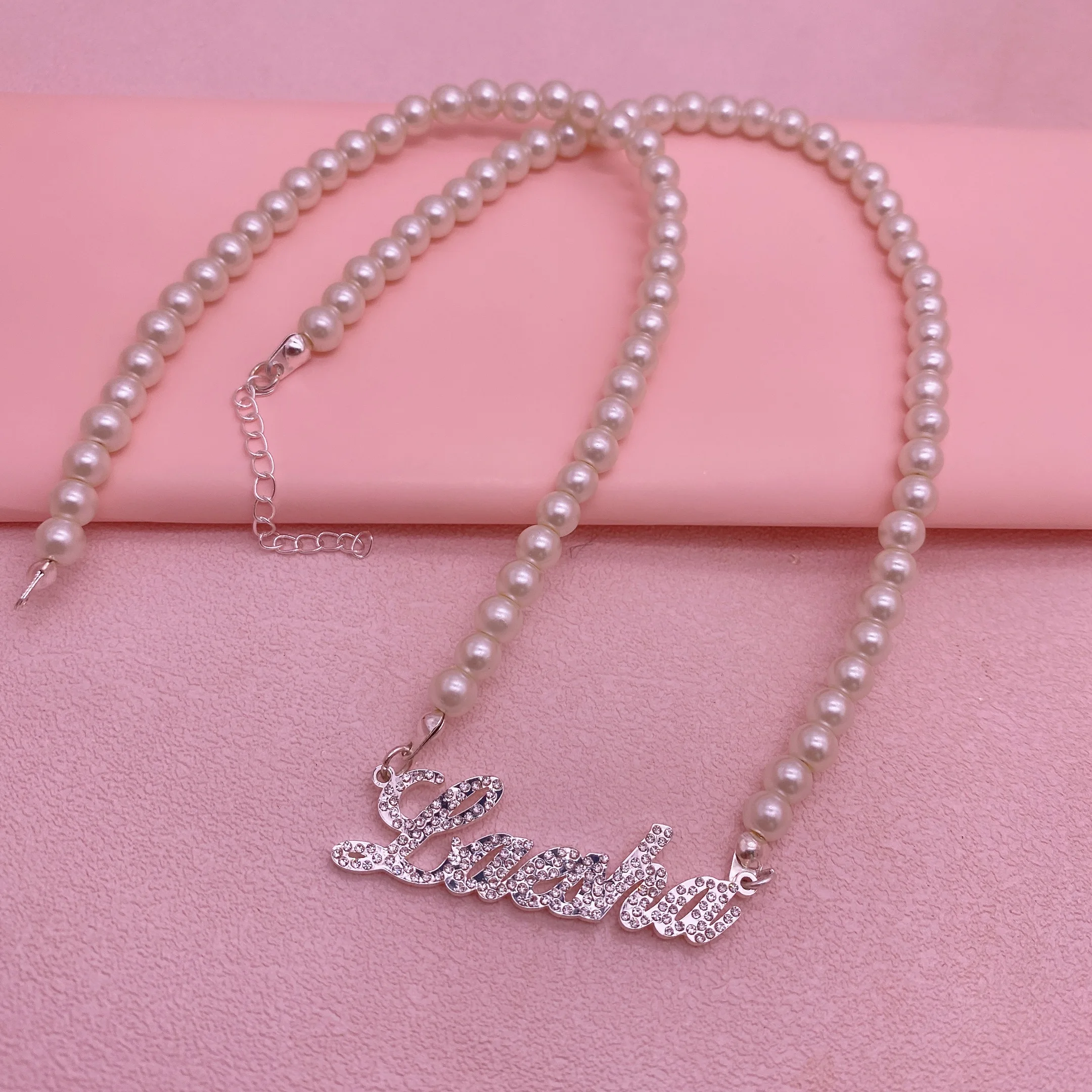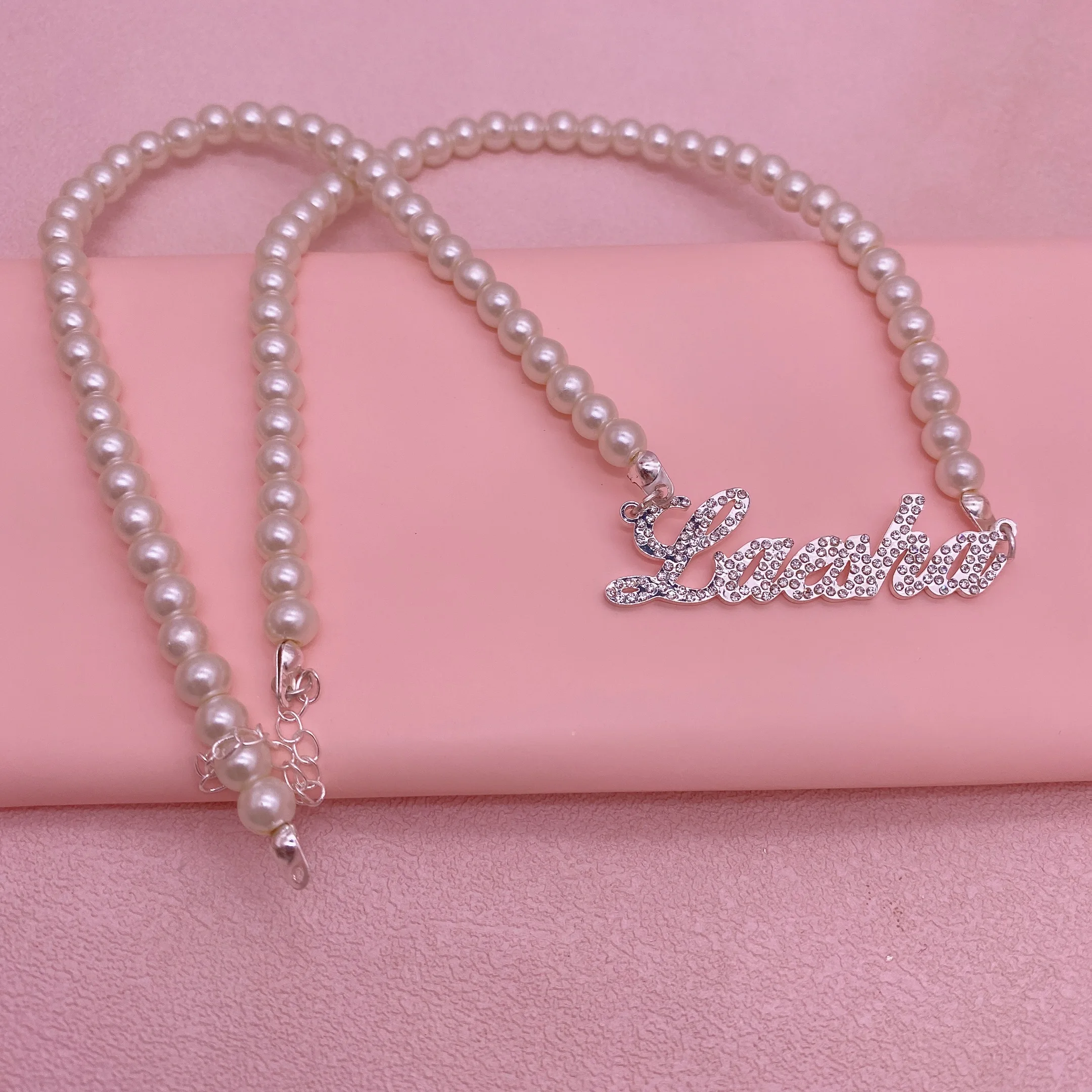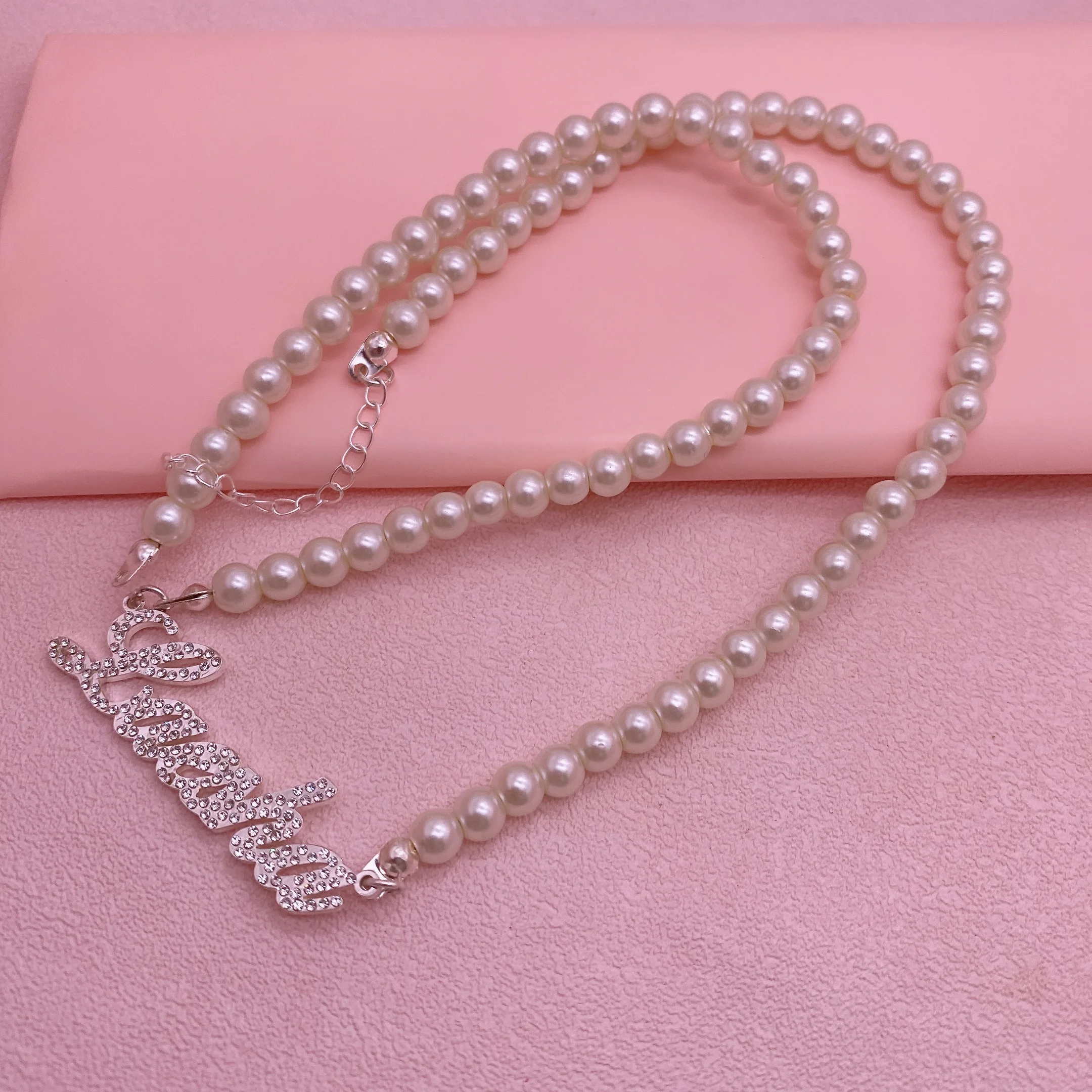 Жемчужное ожерелье с именем под заказ, ожерелье с кулоном, женское ...