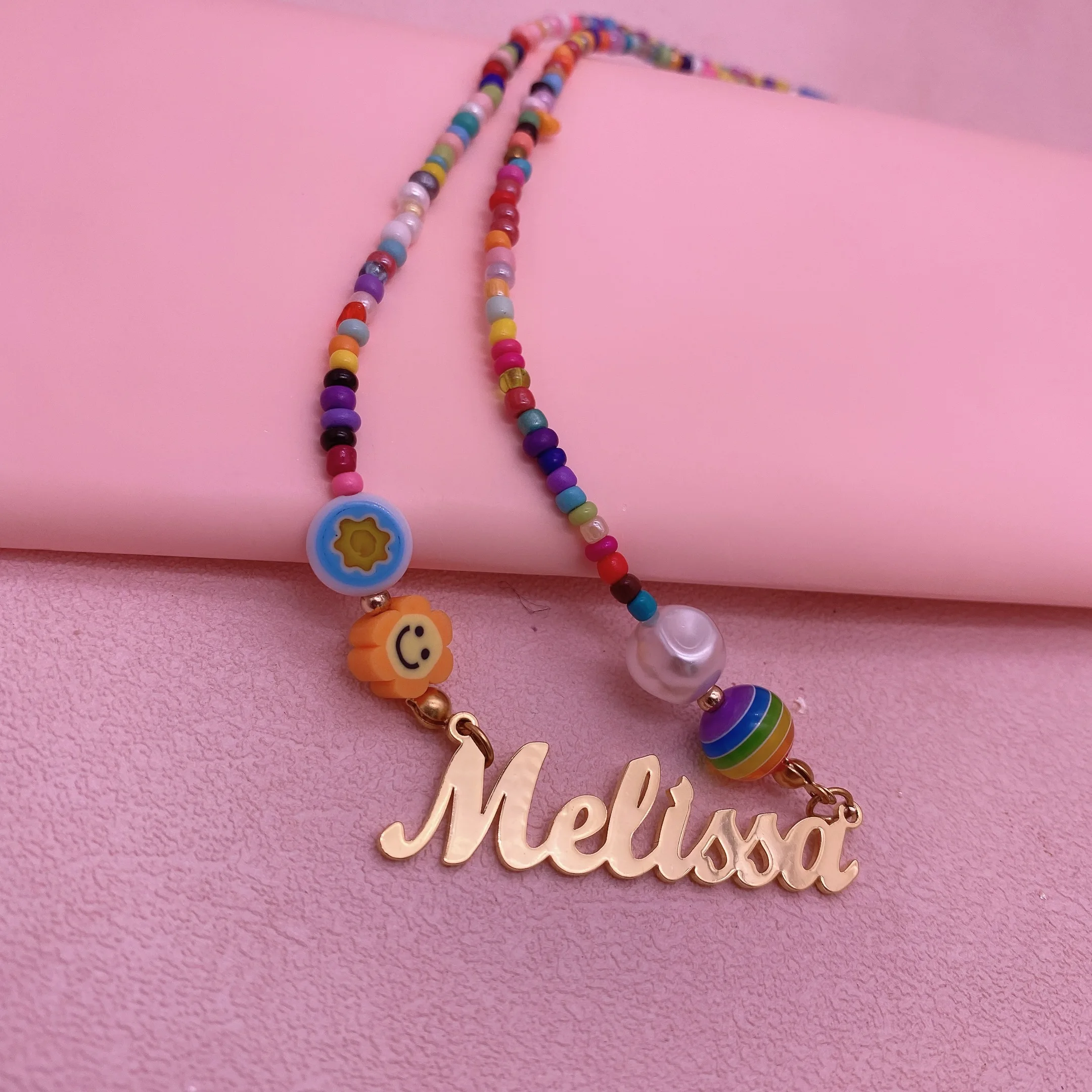 Индивидуальное ожерелье из бисера с именем, персонализированная жем...