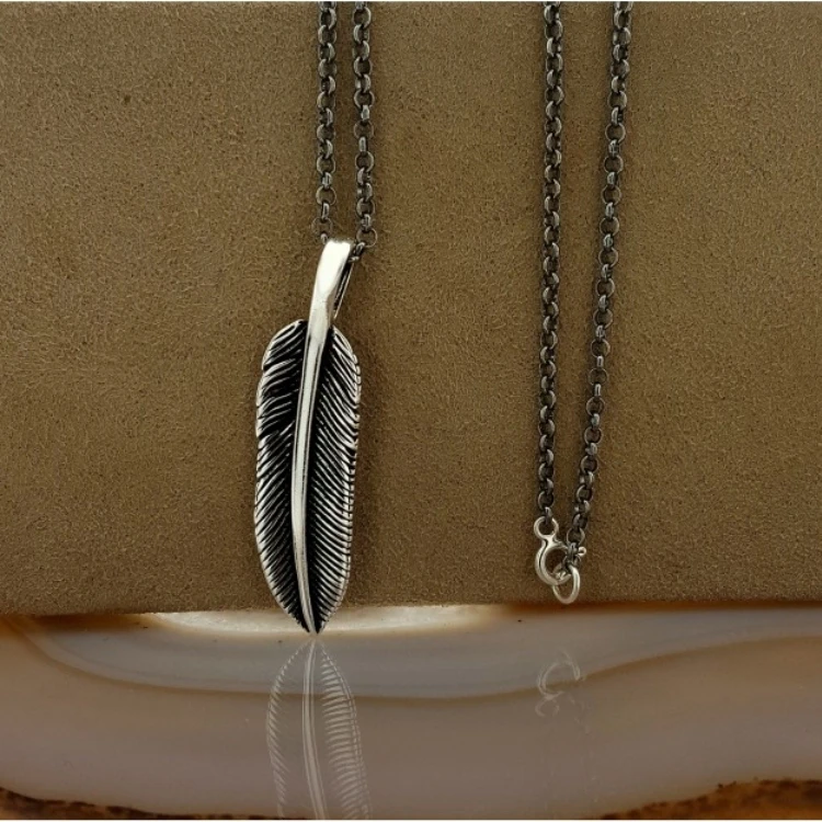 Ожерелье с настоящей искусственной серебряной цепочкой, Орлом и перьями