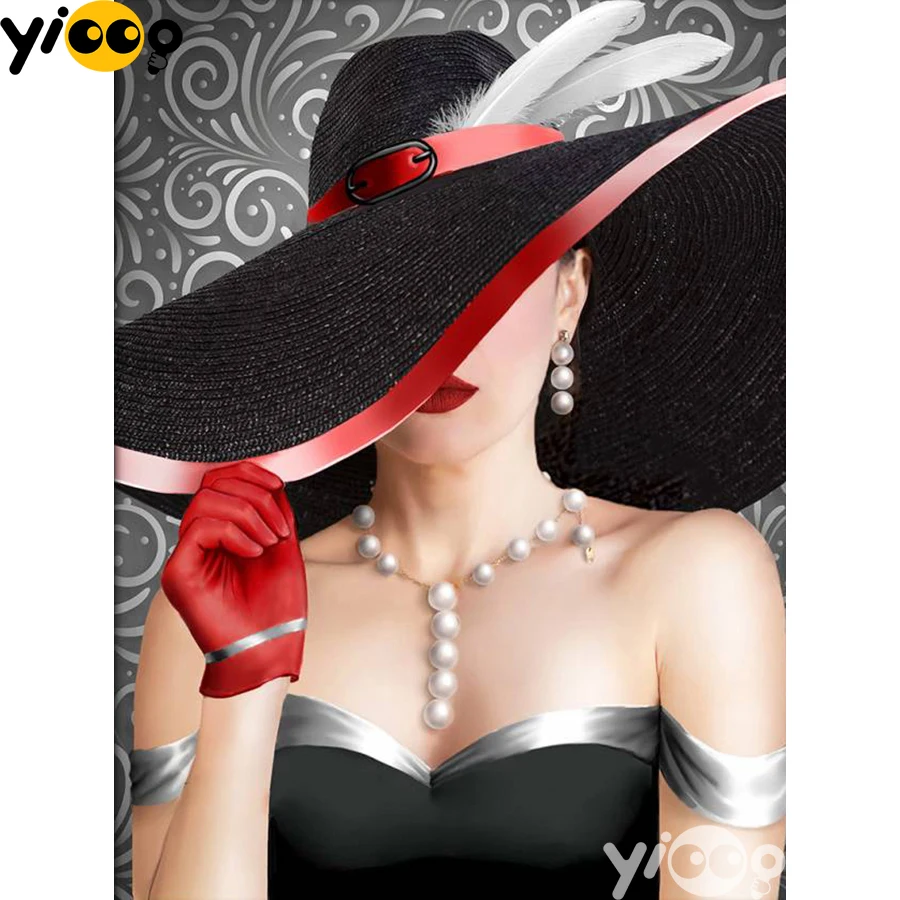 Алмазная вышивка Стразы, картина квадратнойкруглой формы с вышивкой крестиком, в черной шляпе, мозаика для домашнего декора, подарок AX2915