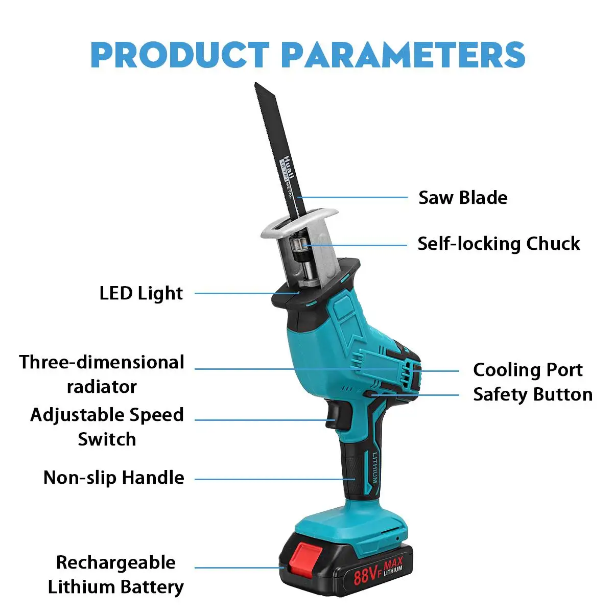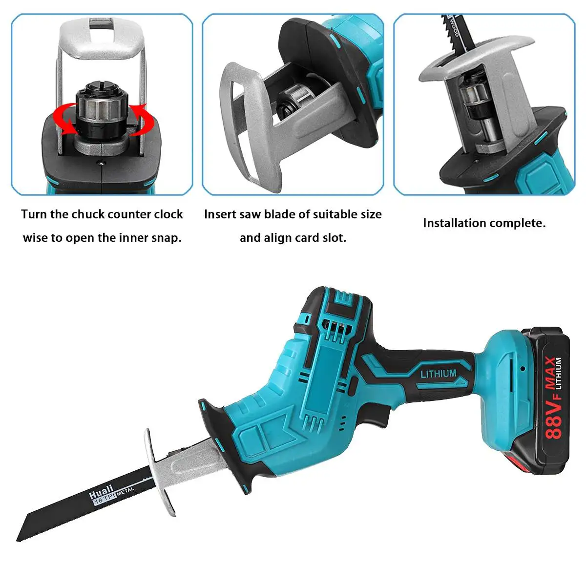 Беспроводная сабельная пила, 15 аккумуляторных элементов, 88 в, 3999 обмин, электрическая пила с 4 лезвиями, цепные пилы, режущая 2 батареи, аккумулятор для Makita 18 в