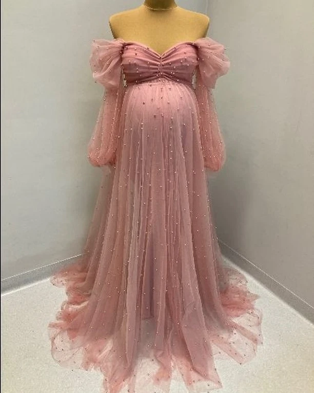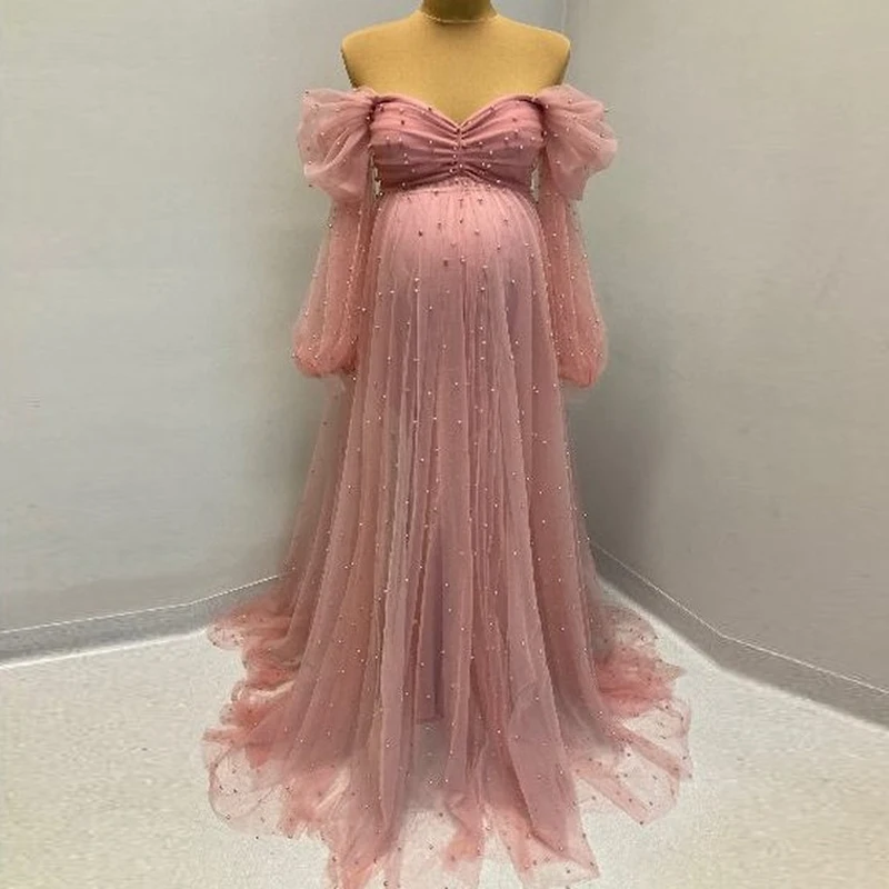 Сдержанный пышный длинный тюлевый халат женские платья для беременн...