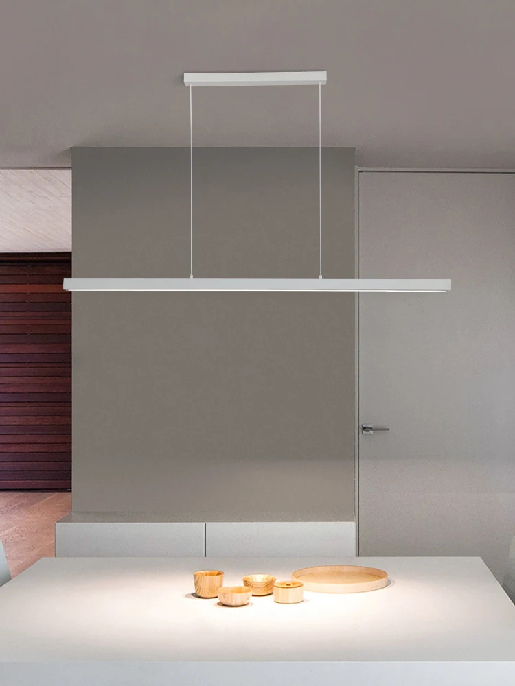 Современный линейный подвесной светильник, столосветильник, длинная лампа из белого и черного дерева для столовой, светодиодные полосы, освещение для кухни