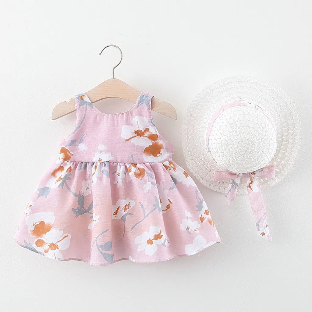 Номер моделиBaby Kids Girls Floral Flowers Princess Dress Hat Outfits