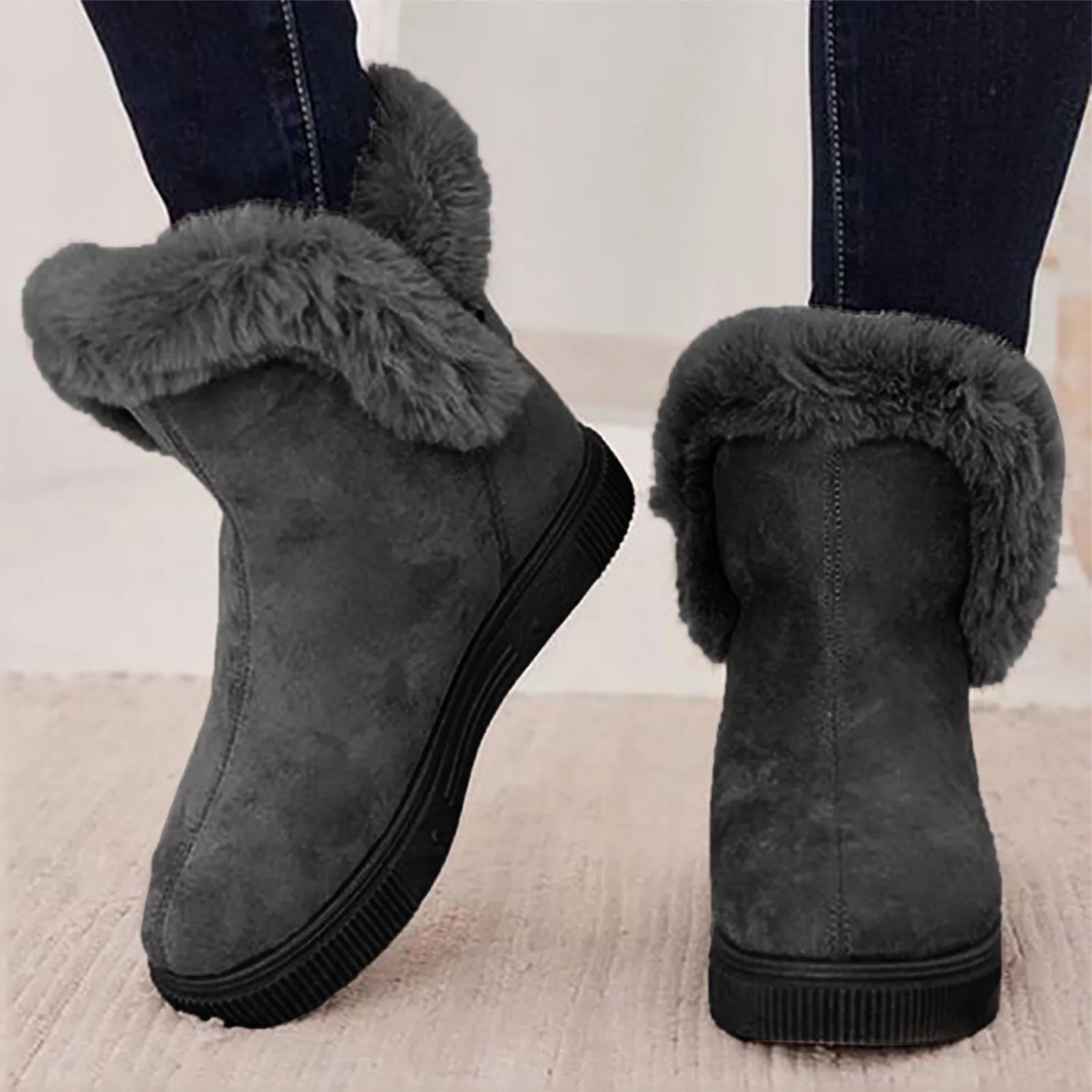 Модные женские ботинки; Зимняя обувь; Женская Повседневная Теплая обувь; Сезон осень-зима; Дышащие теплые ботинки на танкетке без застежки; Лидер продаж