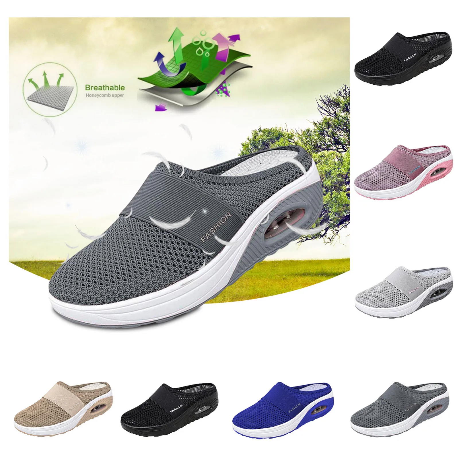 Женская прогулочная обувь без шнуровки с воздушной подушкой; Ортопедические женские сабо на платформе для диабетиков; Легкие тапочки из сетчатого материала; Женские кроссовки на танкетке