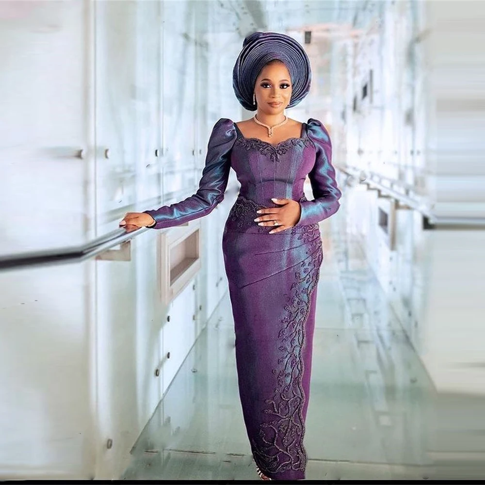 Платье женское вечернее с длинным рукавом, бисером и жемчугом