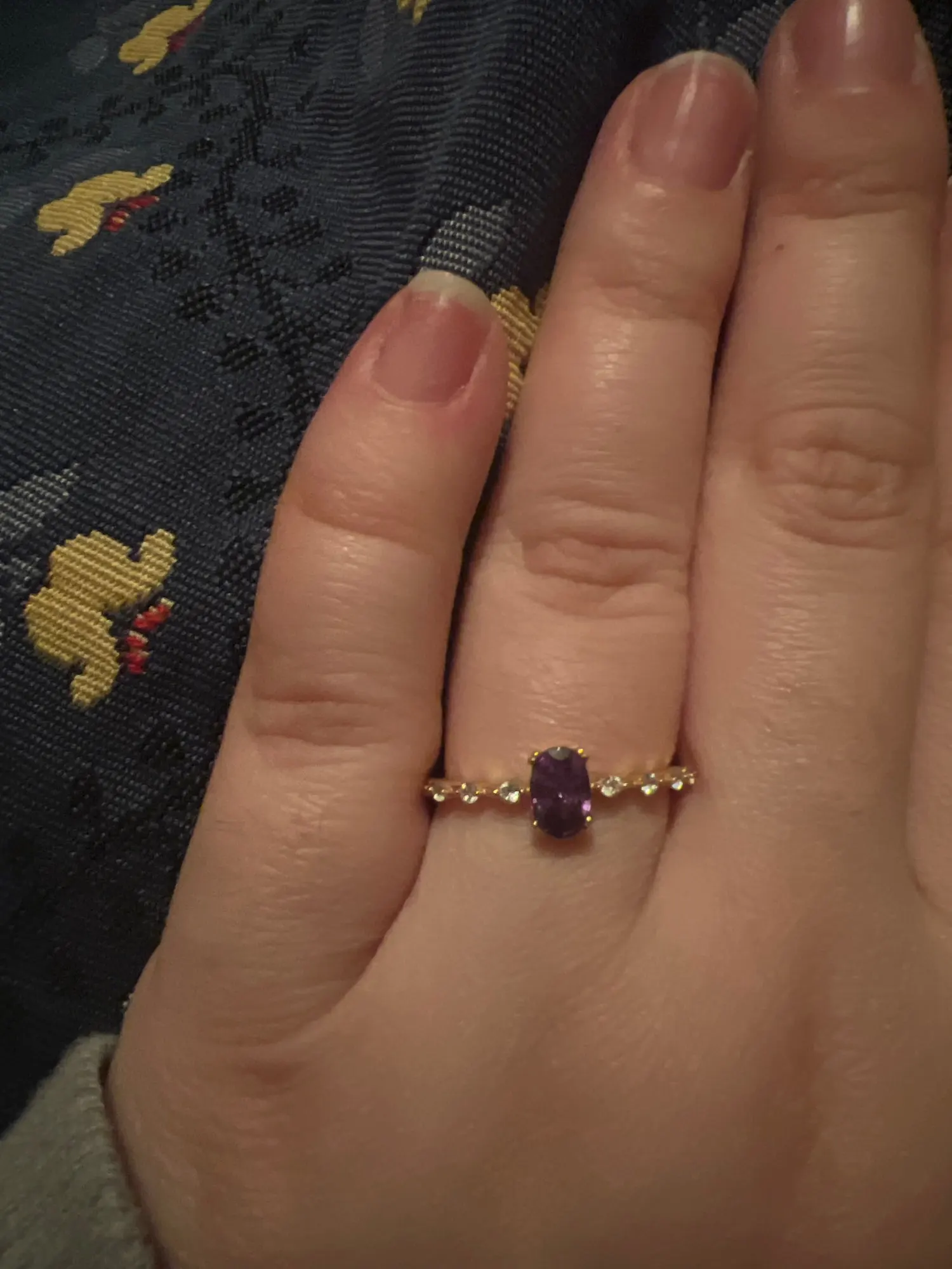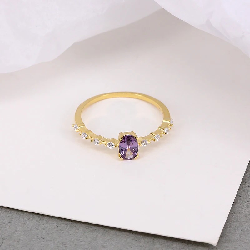 ROXI, простые золотые кольца в форме яйца с фиолетовым кристаллом д...