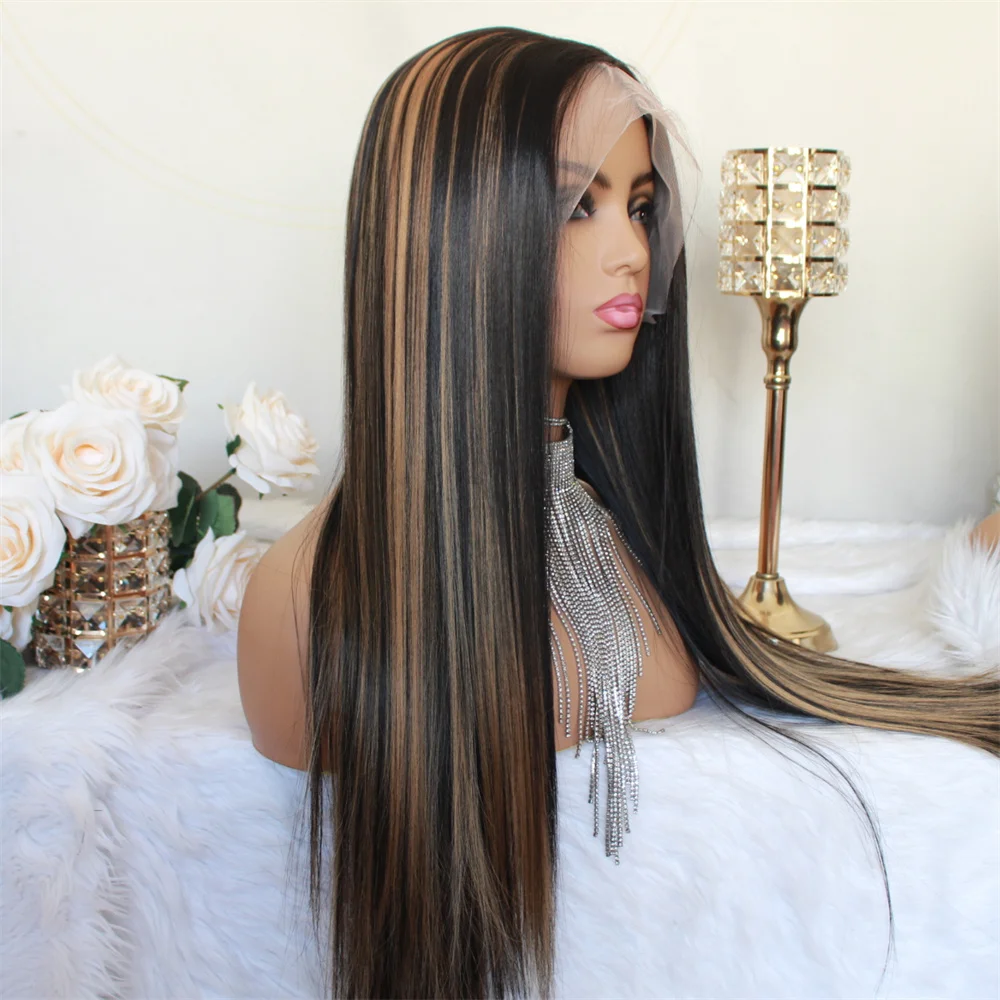 Хайлайтер парик медовая блондинка кружева передние парики 180 Плотность средняя часть прямой парик на сетке Омбре коричневые цветные синтетические парики