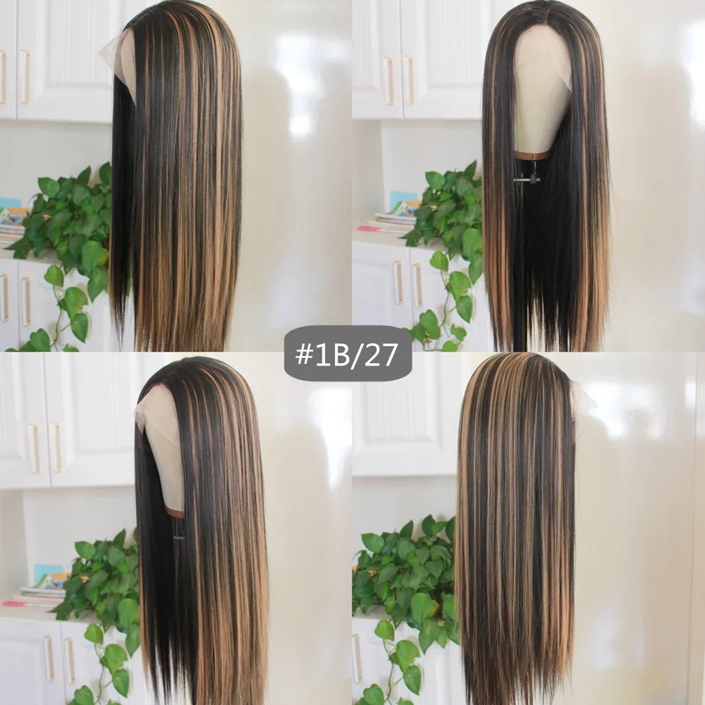 Яркий парик, медовый блонд, кружевные передние парики, 180 плотность, средняя часть, прямой кружевной парик, Омбре, коричневый цвет, синтетические парики