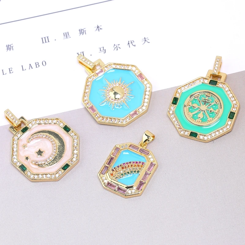 Juya 2021 новый дизайнер 18 К настоящая позолота Луна Звезда Эмаль полумесяц Радуга амулеты для DIY кулон воротник Изготовление ювелирных изделий