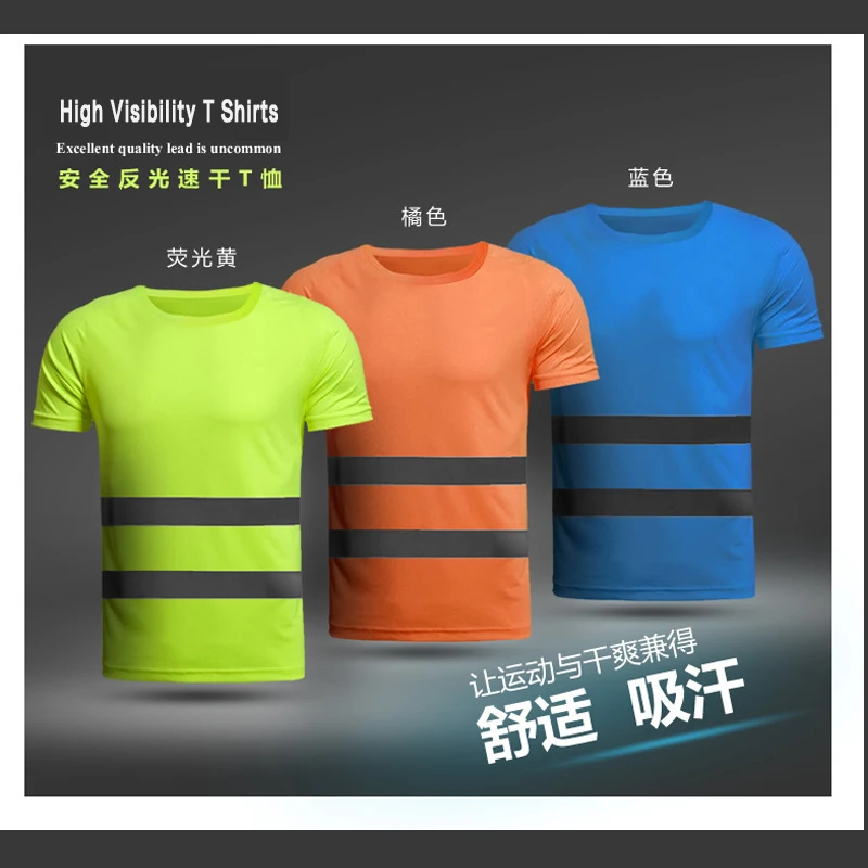 Светоотражающая футболка с высокой видимостью, сетчатая быстросохнущая Защитная Рубашка с коротким рукавом для езды на велосипеде и активного отдыха