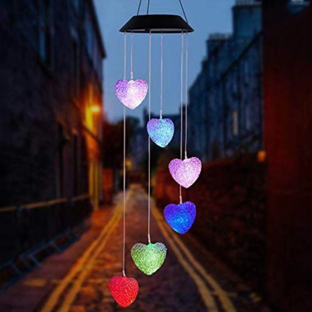 Лампа с сердечком, меняющая цвет, солнечная энергия, ветряные колокольчики, цветной подвесной светильник, водонепроницаемый уличный подвесной декоративный светильник s для дома и сада