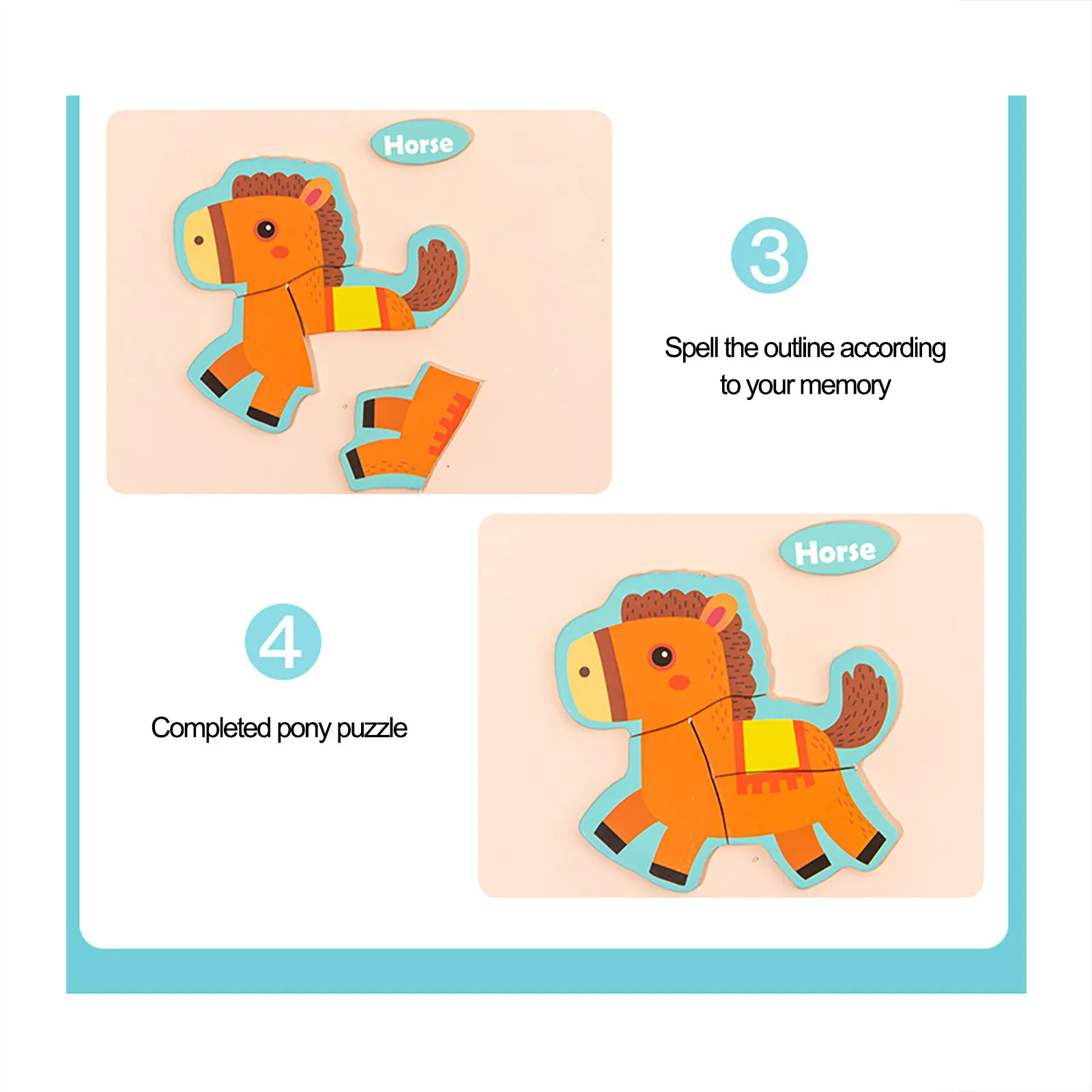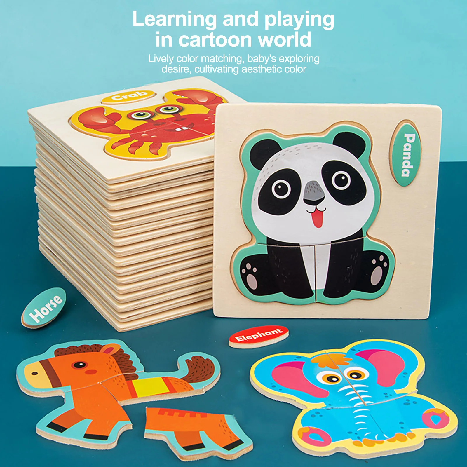 Детские игрушки, Деревянный 3d пазл, Обучающие Мультяшные животные,...