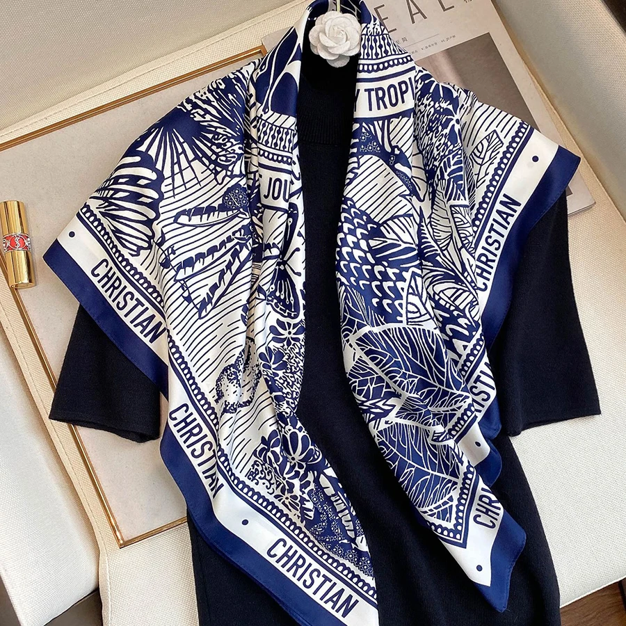 2022 90x90 см шелковый шарф роскошный брендовый дизайнерский шарф для волос с принтом головной платок большой платок хиджаб шаль для женщин