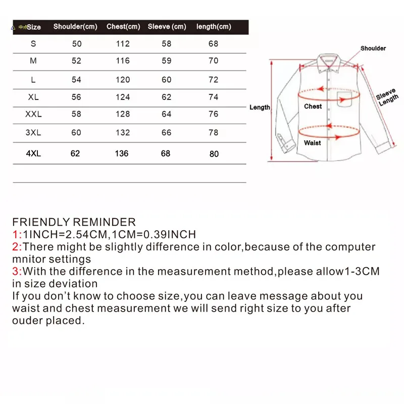 Полезные советы: размер заказа-это Азиатский Размер, он меньше, чем размер США, Великобритании, Австралии, ЕС.Если вы не уверены, пожалуйста, сообщите нам ваш рост и вес, мы предложим вам правильный размер.Единица измерения: см (1 см = 0,394 дюйма)