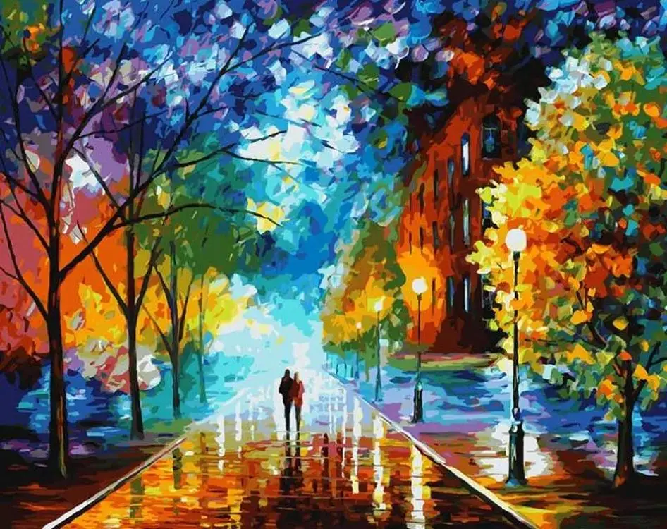 Картина по номерам "Фонари на осенней аллее", 40x50, Белоснежка, 53...