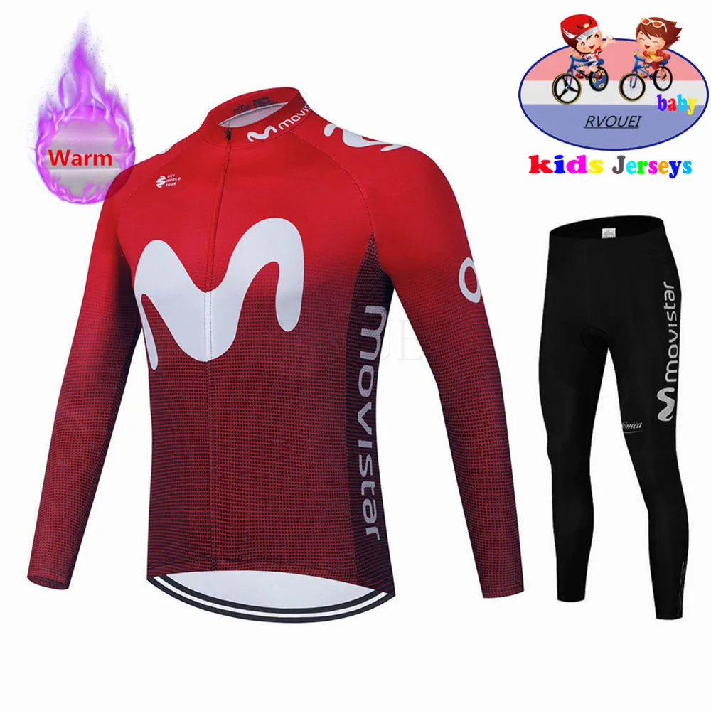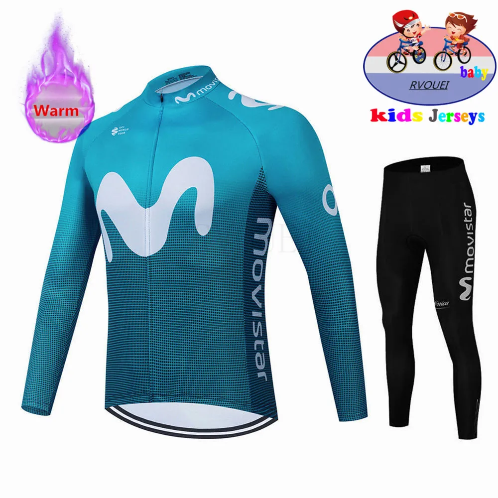 Детский зимний комплект велосипедной одежды Movistar, теплый флисовый комплект для горных велосипедов и девочек, детская одежда для велоспорта