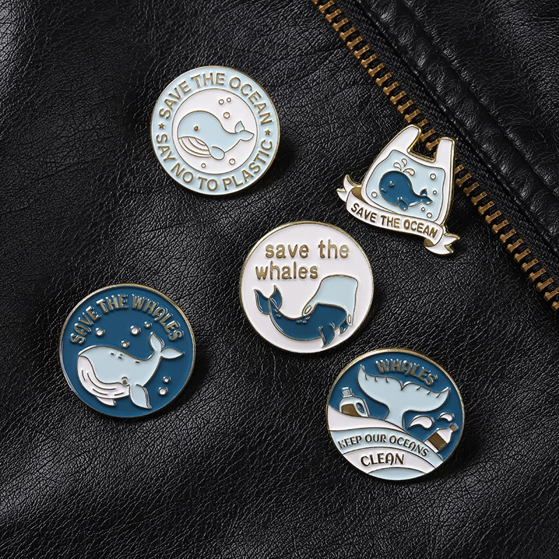 Эмалированные булавки с мультяшным Китом, милая круглая брошь Китовая брошь из мультфильма, Новая морская серия, брошь из сплава в виде животного, морская синяя брошь, оптовая продажа