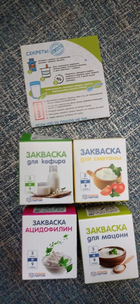 Домашний йогурт я делаю давно. А тут попались закваски с другими видами кисломолочной продукции. Буду пробовать. Спасибо за точность сборки заказа и довольно быструю доставку.