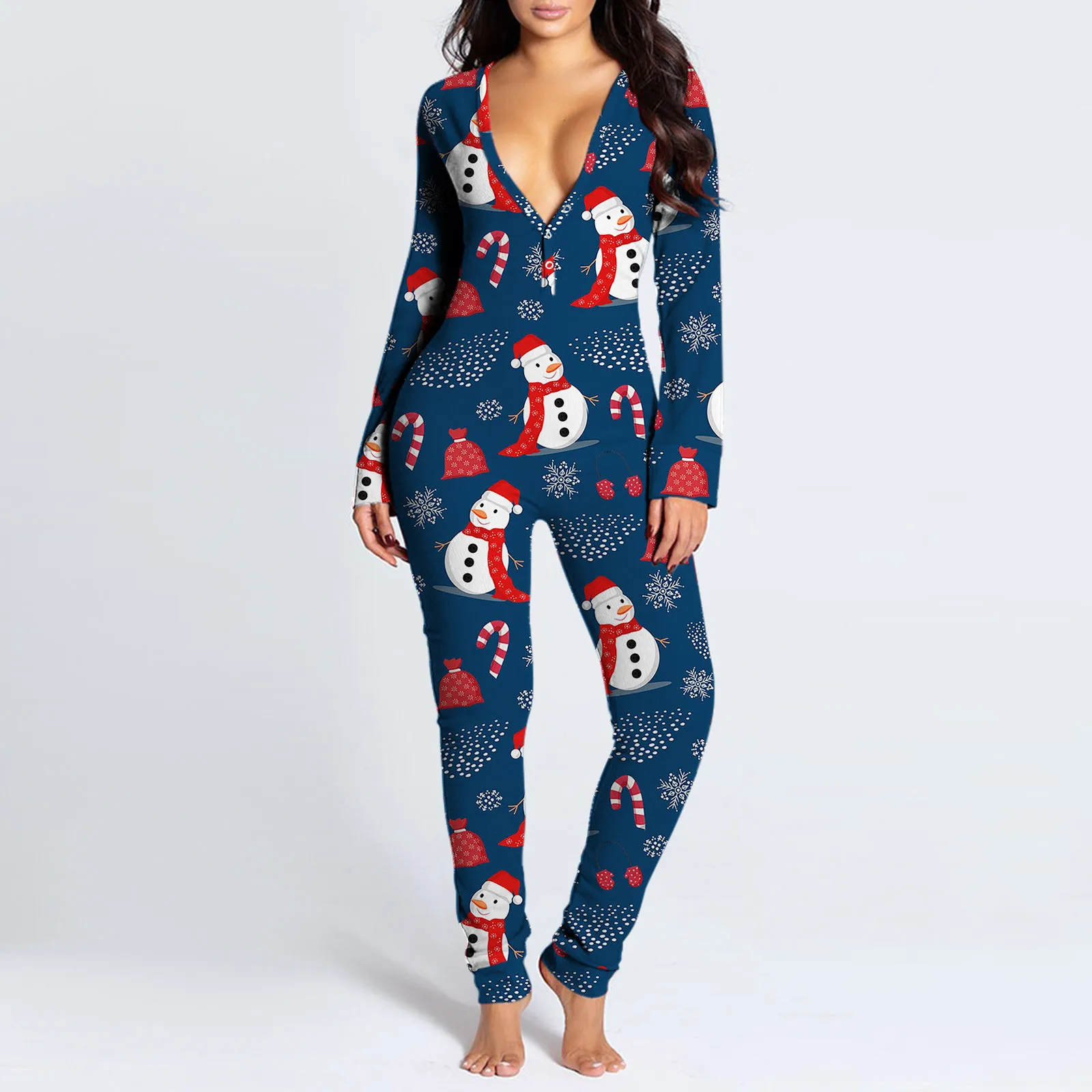 Женский Пижамный комбинезон с V-образным вырезом и принтом